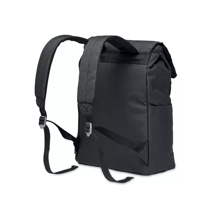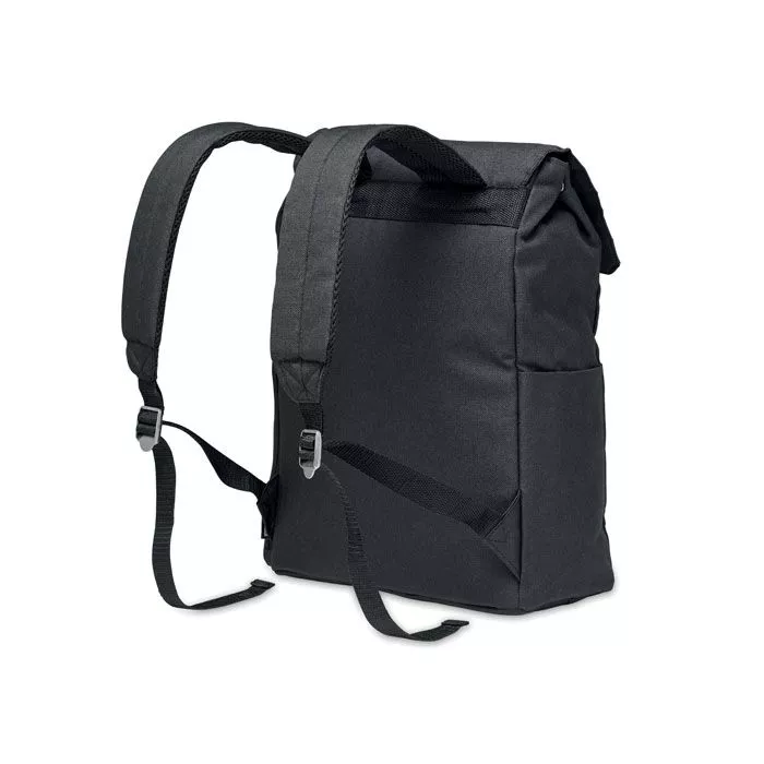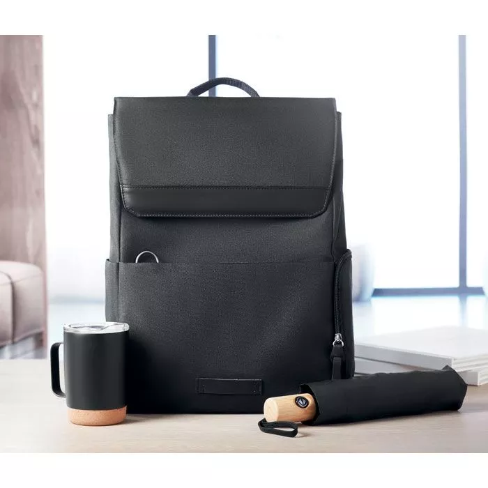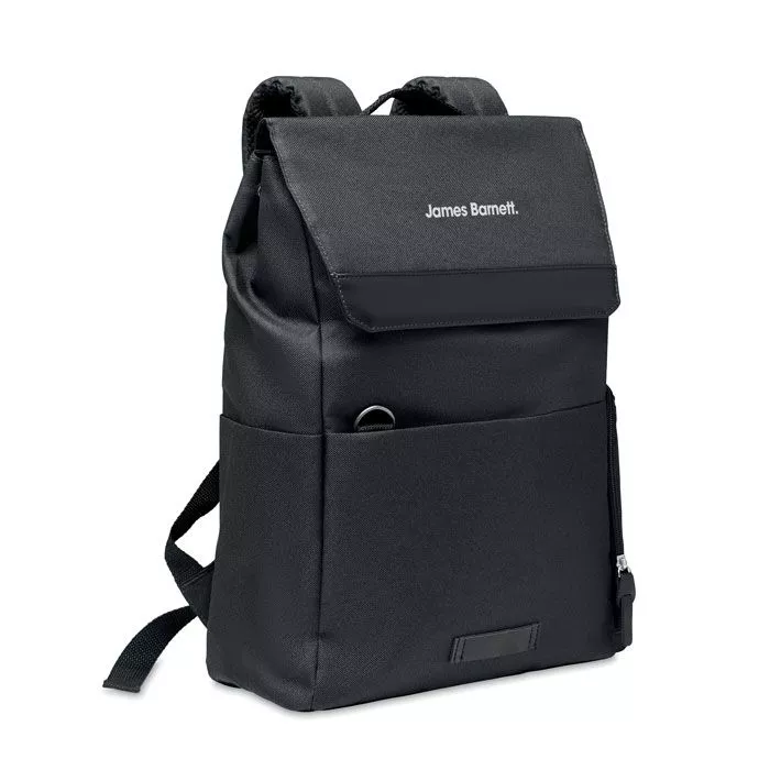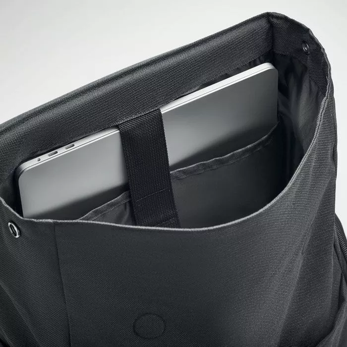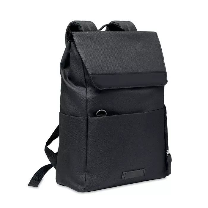 Рюкзак для ноутбука диагональю 15 дюймов из переработанного полиэтилена (RPET) 600D с магнитной застежкой. Основное отделение с мягкой прокладкой, передние карманы на молнии и 2 боковых кармана.