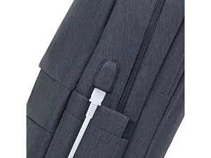 • Городской рюкзак из высококачественной, водоотталкивающей ткани с элементами защиты антивор: - Молнии отделения для ноутбука и переднего отделения спрятаны под тканевым загибом; - Плотный материал с утолщенными стенками и дном для защиты ноутбука. • Просторное основное отделение имеет карман на молнии для паспорта и бумажника и два кармана на дне рюкзака - один для мыши, второй для повербанка. • На боковой стороне рюкзака имеется USB-порт для подключения портативного внешнего аккумулятора к смартфону. • Внешний скрытый передний карман на молнии для хранения аксессуаров, также оборудован панелью-органайзером для хранения визитных карт, флэш-накопителей, смартфона. • Два боковых кармана для ёмкостей с водой. • Двойная застежка молния для удобного доступа к устройству. • Удобная мягкая ручка для переноски и наплечные ремни со смягчающими подкладками помогут чувствовать себя комфортно в самом долгом путешествии. • Специальная система крепления ремешков на липучке закрепляет их и создает дополнительное удобство.