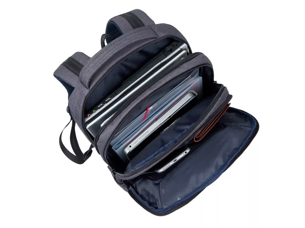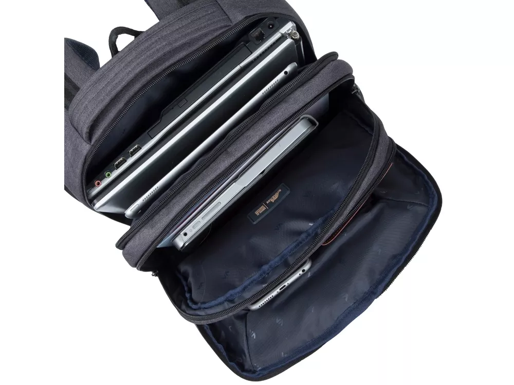 Рюкзак для ноутбука до 16. Описание: • Рюкзак в спортивном стиле из высококачественной, водоотталкивающей ткани. • Легкий, но имеет утолщенные стенки для защиты ноутбука от случайных ударов и царапин, а также от пыли и влаги. • Основное отделение для ноутбука с вертикальной загрузкой имеет дополнительный внутренний карман для планшета до 10.1. • Внешнее переднее отделение на молнии для хранения аксессуаров, также оборудовано панелью-органайзером для хранения визитных карт, флэш-накопителей, смартфона. Также на передней панели карман на молнии для различных мелочей. • Дополнительное просторное отделение для хранения книг, документов, вещей необходимых в путешествии. • Два боковых кармана для ёмкостей с водой. • Двойная застежка молния для удобного доступа к устройству. • Удобная мягкая ручка для переноски и наплечные ремни со смягчающими подкладками помогут чувствовать себя комфортно в самом долгом путешествии. • На задней стенке имеется ремень крепления к багажной сумке и скрытый карман на молнии для паспорта, бумажника. • Специальная система крепления ремешков на липучке закрепляет их и создает дополнительное удобство.