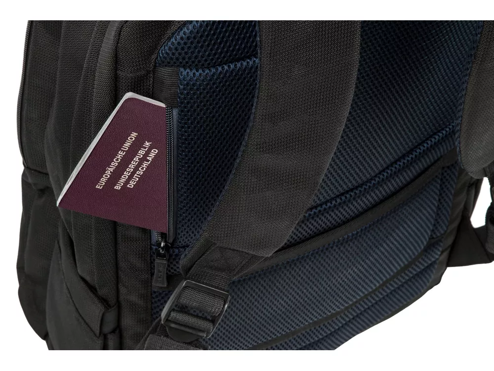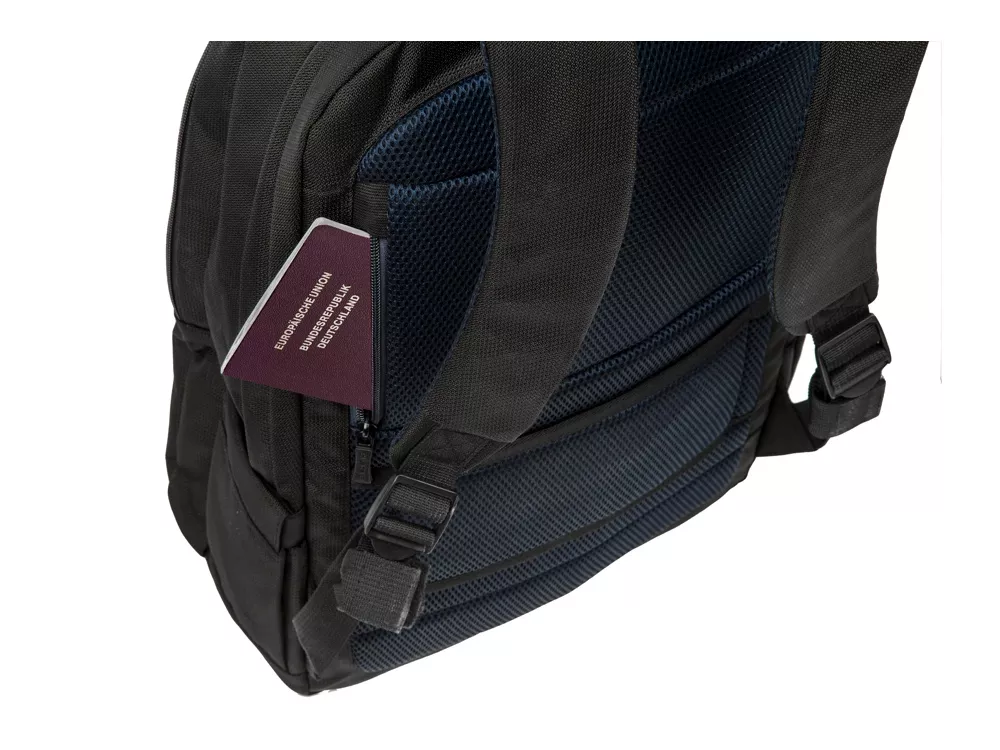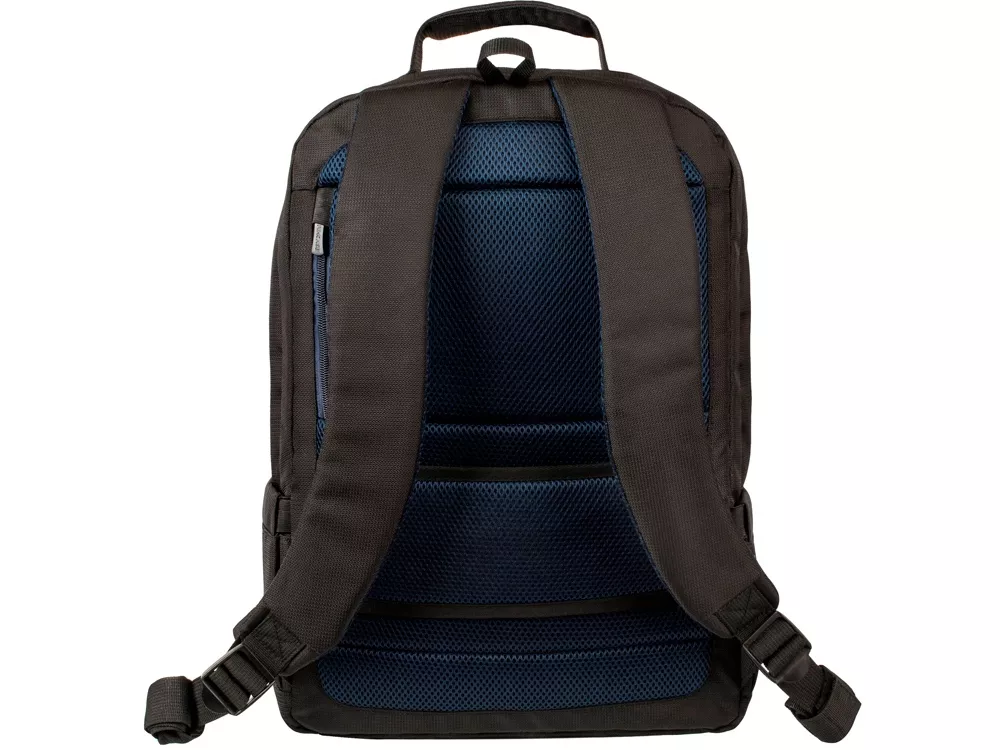 Рюкзак для ноутбука до 17''. • Многофункциональный рюкзак для профессионалов, идеально подходит для деловых поездок и туристических путешествий. • Изготовлен из плотного синтетического материала и имеет утолщенные стенки для лучшей защиты ноутбука от случайных ударов и царапин, а также от пыли и влаги. • Основное отделение для ноутбука с вертикальной загрузкой, имеет мягкие стенки и ремень для надежной фиксации ноутбука до 17. • Просторная секция на молнии для хранения книг и документов. • Дополнительное внутреннее отделение для планшета до 10.1. • Два внешних передних кармана на молнии. Один для хранения аксессуаров, зарядного устройства. Второй оборудован панелью-органайзером для хранения визитных карт, авторучек, смартфона. • Двойная застежка молния для удобного доступа к устройству. • Удобная мягкая ручка для переноски и наплечные ремни со смягчающими подкладками помогут чувствовать себя комфортно в самом долгом путешествии. • Сетчатый материал задней стенки рюкзака обеспечивает циркуляцию воздуха для максимального комфорта вашей спины. • На задней стенке имеется ремень крепления к багажной сумке и скрытый карман на молнии для паспорта, бумажника. • Два боковых кармана для ёмкостей с водой. • Специальная система крепления ремешков на липучке.