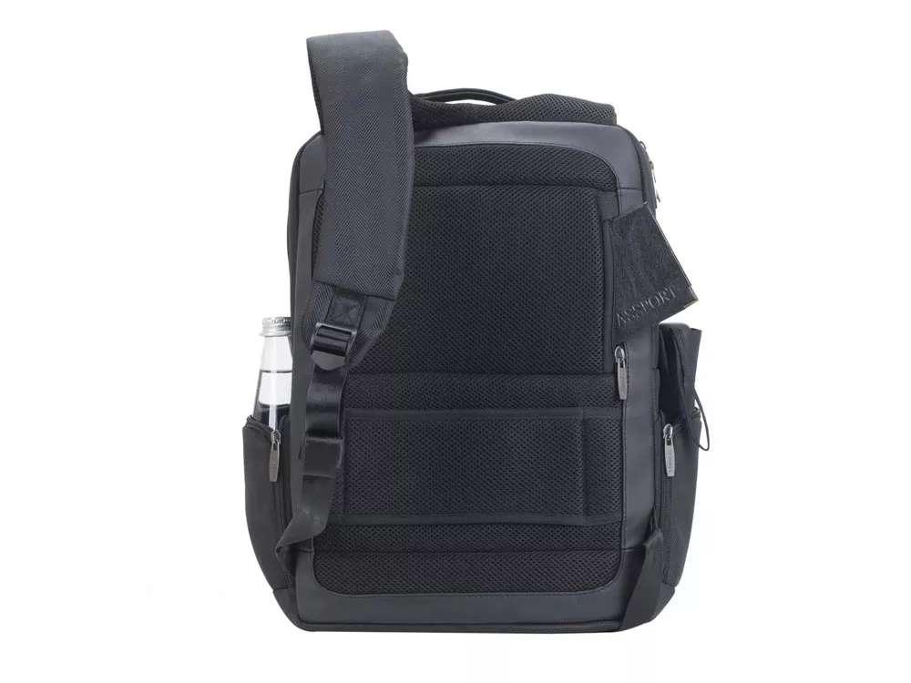 Рюкзак для ноутбука до 15.6. • Рюкзак для ноутбуков до 15.6. • Рюкзак выполнен из высококачественной искусственной кожи и полиэстера, имеет утолщенные стенки для лучшей защиты ноутбука от случайных ударов и царапин, а также от пыли и влаги. • Рюкзак имеет два отделения на молнии. Первое отделение имеет карман для планшета до 10.1 и документов. Во втором, органайзер для хранения аксессуаров, флэш-накопителей, смартфона и карман на молнии для бумажника, документов. • На верхней панели карман на молнии для смартфона, 7 планшета. • Металлическая, оригинальная фурнитура. • Удобная ручка для транспортировки. • Сетчатый материал задней стенки рюкзака обеспечивает циркуляцию воздуха для максимального комфорта вашей спины. • На задней стенке имеется ремень крепления к багажной сумке и скрытый карман на молнии для паспорта, бумажника. • Два боковых кармана на молнии для ёмкостей с водой или других мелочей. • Специальная система крепления ремешков на липучке. Внутренний/Внешний размер (мм): 290x400x40/ 310x440x120 Вес: 795 г. Материал: Полиэстер, искусственная кожа. Цвет: Черный.
