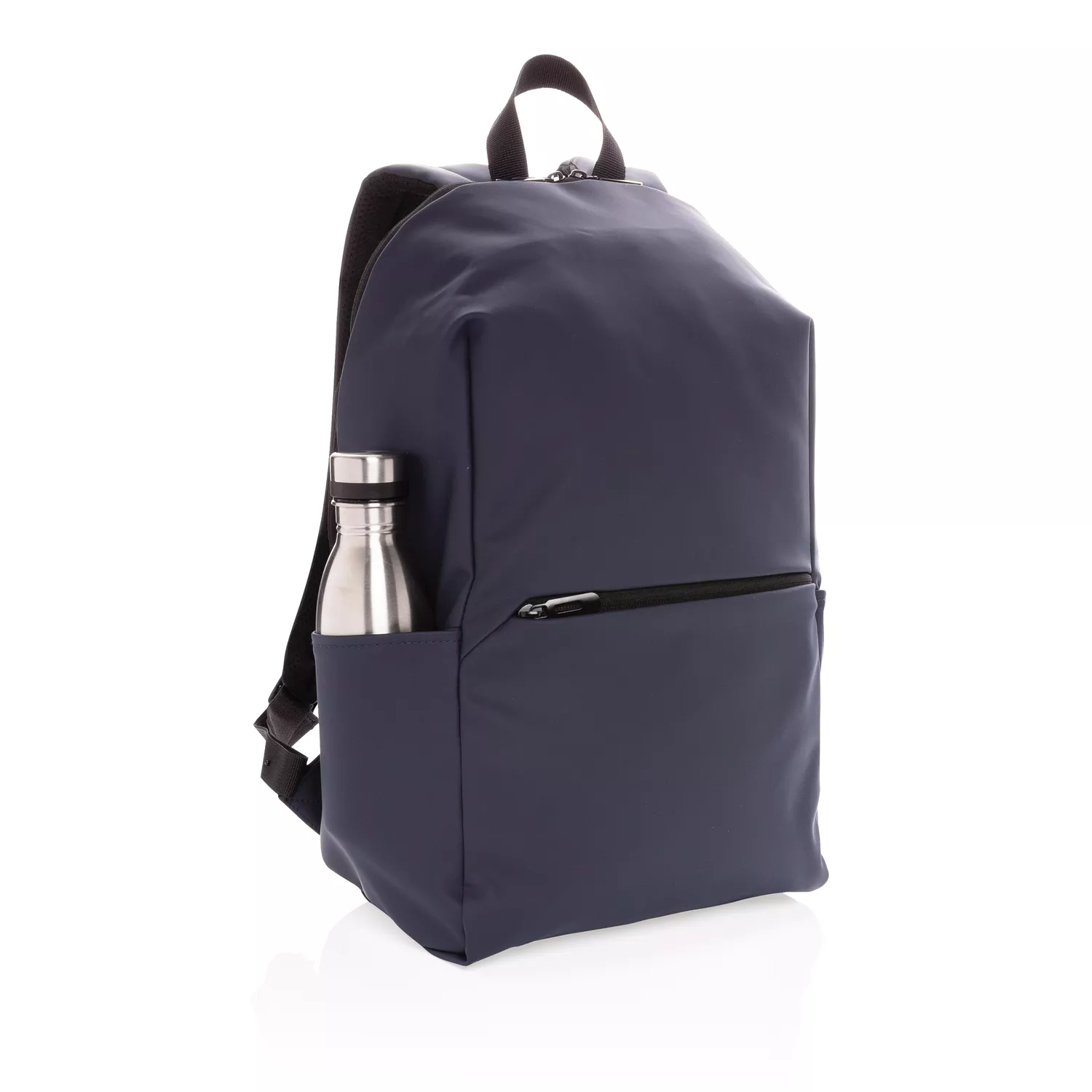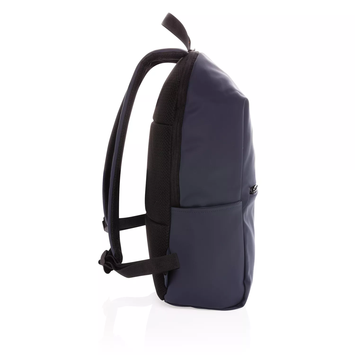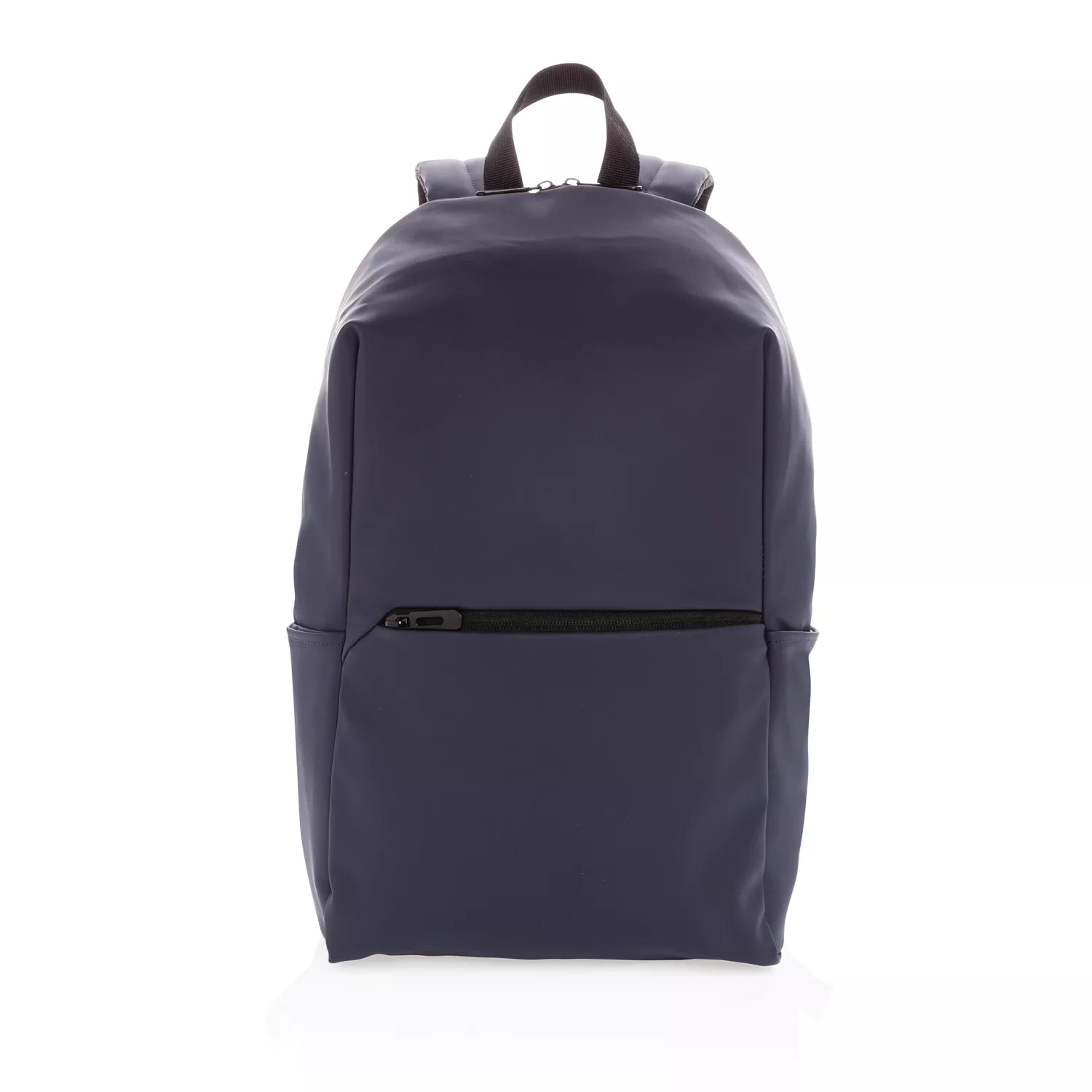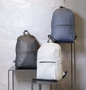 Минималистичный рюкзак из гладкого полиуретана с подкладкой и дополнительным карманом для ноутбука 15,6 дюймов. Также предусмотрены 2 внутренних кармана и 2 петли для ручек. Задняя стенка из сетчатого материала, регулируемые лямки. Снаружи — 100% полиуретан, внутри — полиэстер 210D. Без ПВХ.