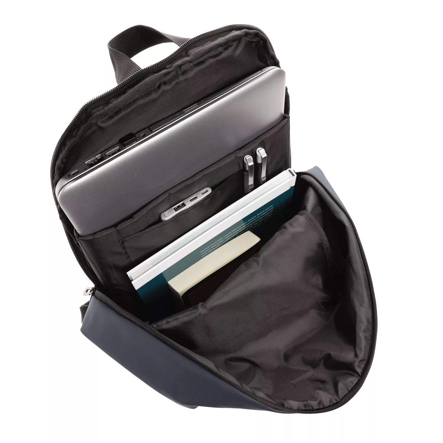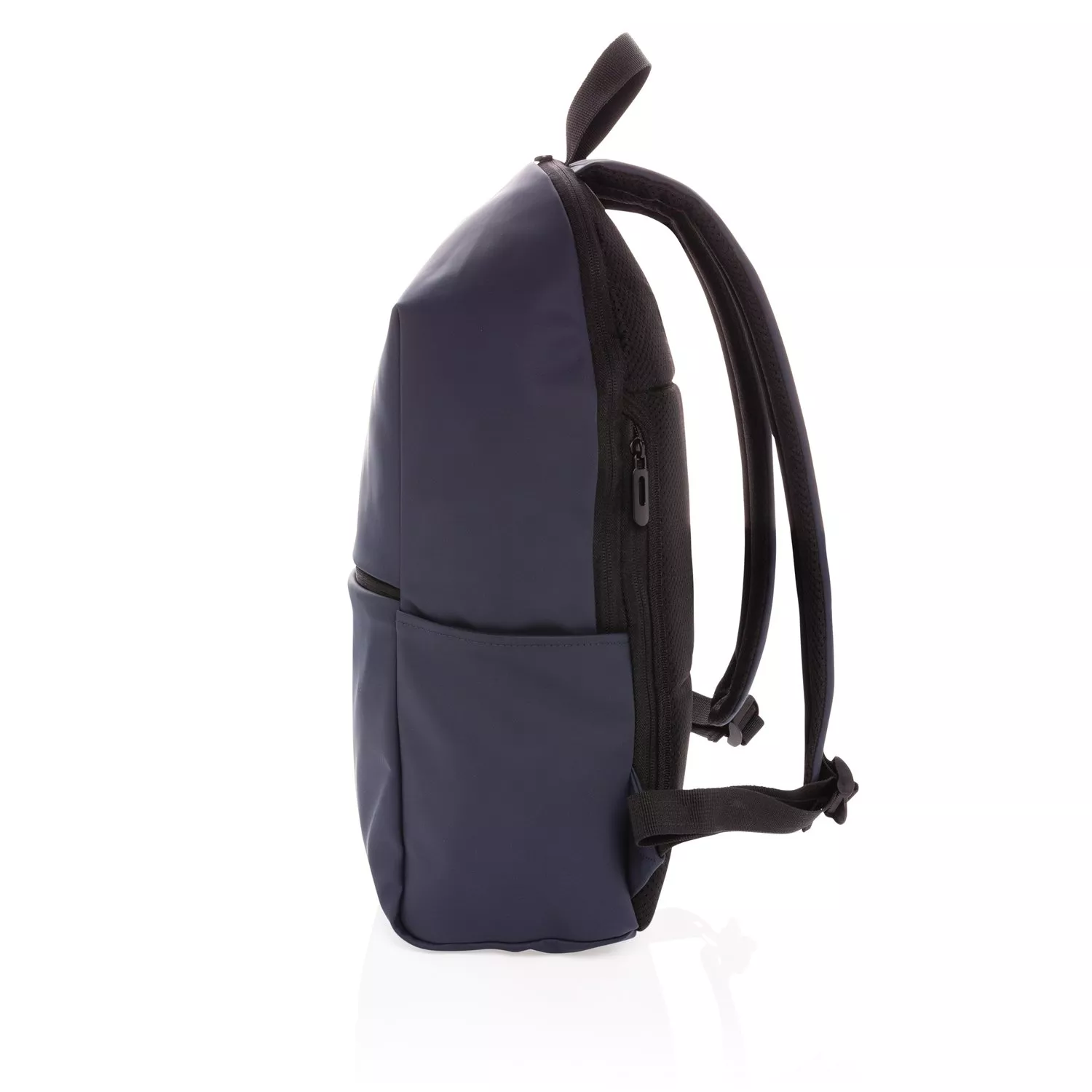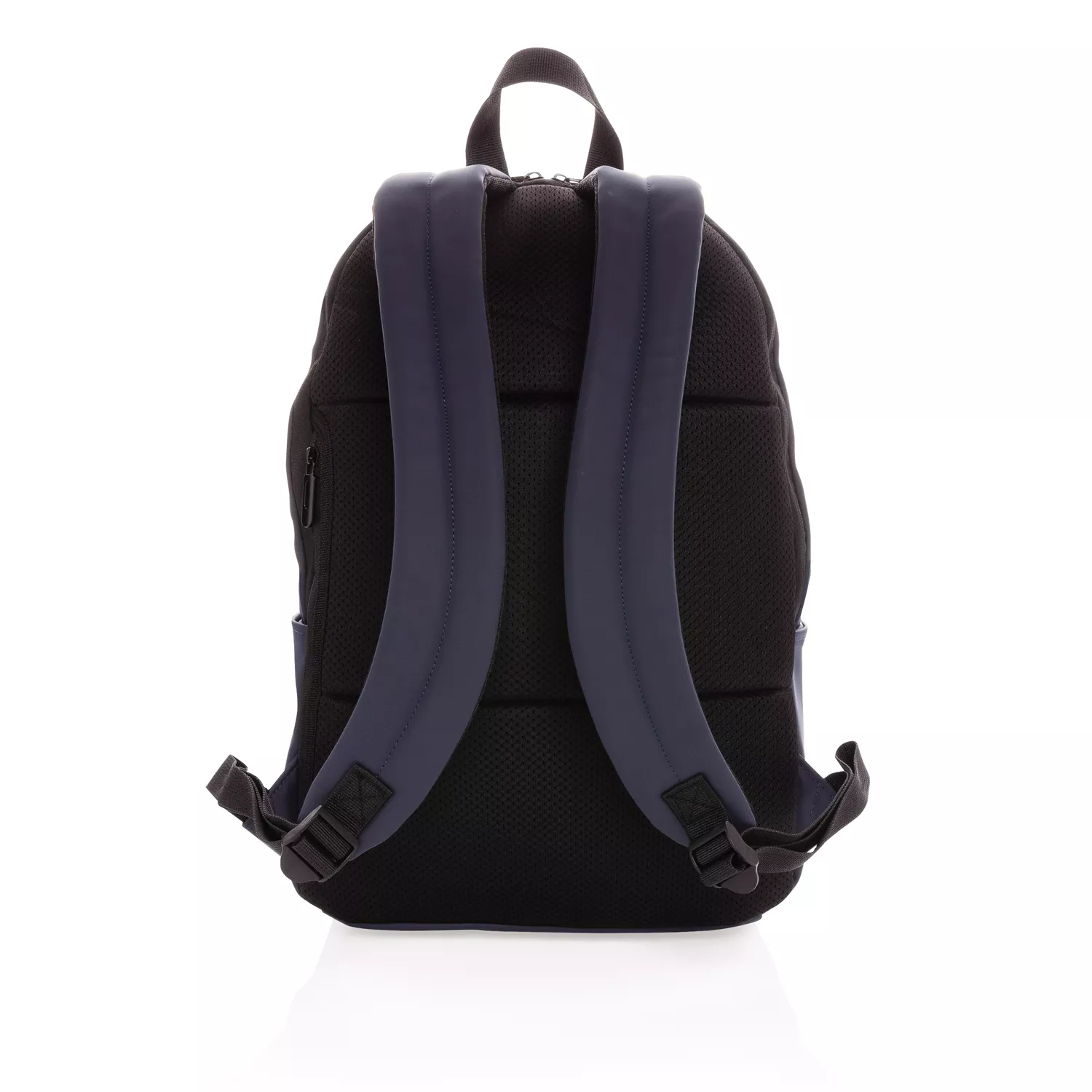 Минималистичный рюкзак из гладкого полиуретана с подкладкой и дополнительным карманом для ноутбука 15,6 дюймов. Также предусмотрены 2 внутренних кармана и 2 петли для ручек. Задняя стенка из сетчатого материала, регулируемые лямки. Снаружи — 100% полиуретан, внутри — полиэстер 210D. Без ПВХ.