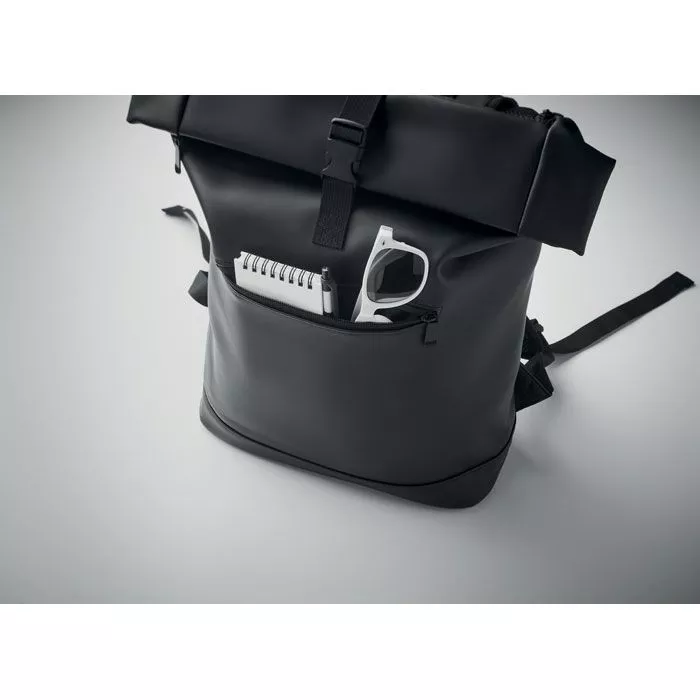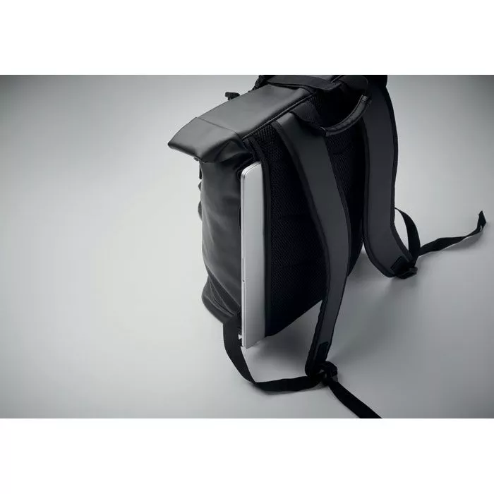 Рюкзак для ноутбука с 15-дюймовым ролл-топом из мягкого полиуретана с мягкой спинкой и усиленным дном. Большой передний карман на молнии. Подкладка из материала 210D RPET.