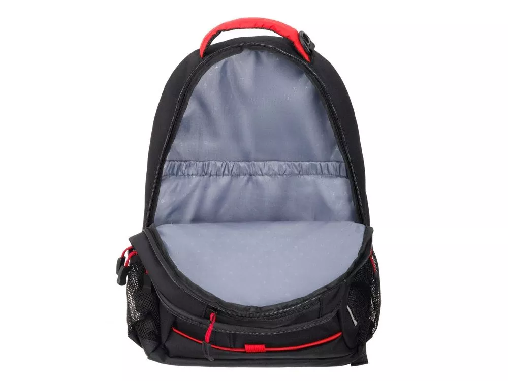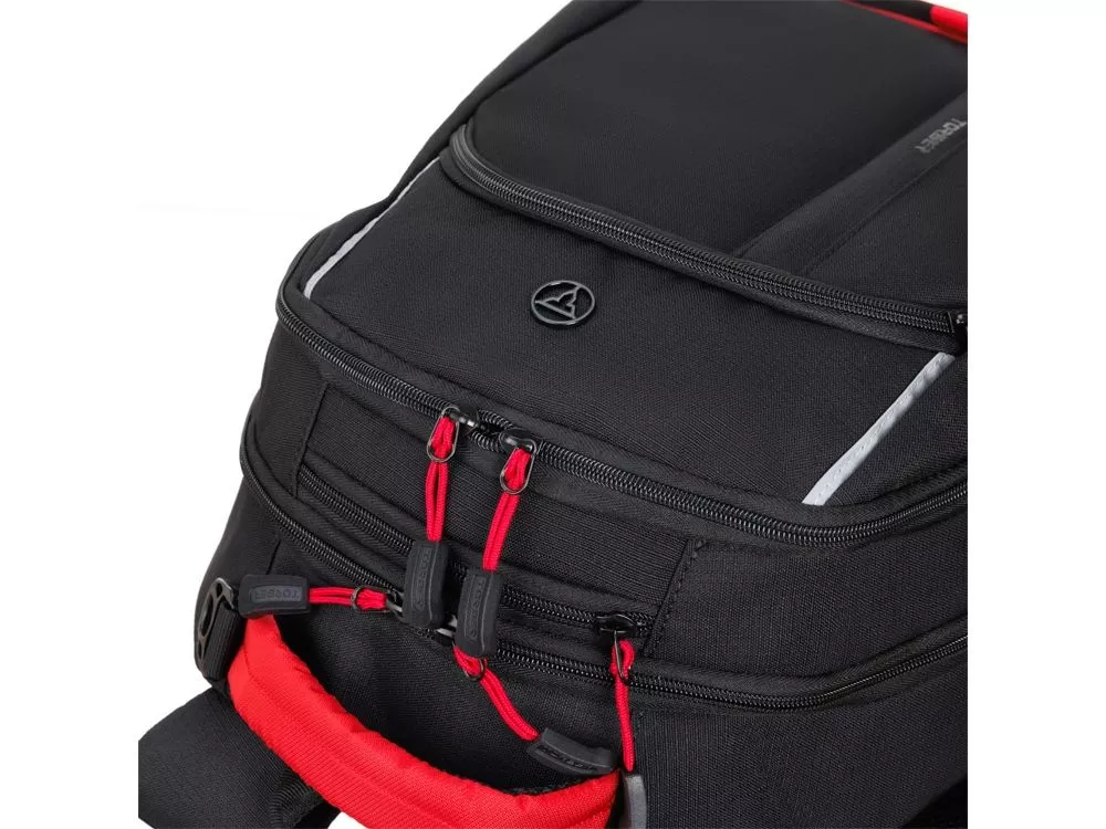 С рюкзаком TORBER Rockit Ваша поездка преобразится! В любое время и в любом месте все Ваши вещи будут под рукой. Функциональная организация: - Мягкий флисовый карман быстрого доступа в верхней части рюкзака; - Внешний карман-органайзер на молнии для мелких предметов, с кольцом для ключей; - Внешний объемный карман на молнии; - 2 кармана для бутылок или зонта из эластичной сетки; - Эргономичная ручка; - Размер: 32 × 14 × 50 см; - Объем: 22 л. Два боковых кармана из эластичной сетки предназначены для хранения бутылок воды или зонта. Карман-органайзер и кольцо для ключей помогут вам упорядоченно разложить большое количество мелких предметов. Рюкзак имеет эргономичную ручку для более комфортного использования. Оригинальный дизайн и неповторимый стиль модели подчеркивают черный и красный цвета.