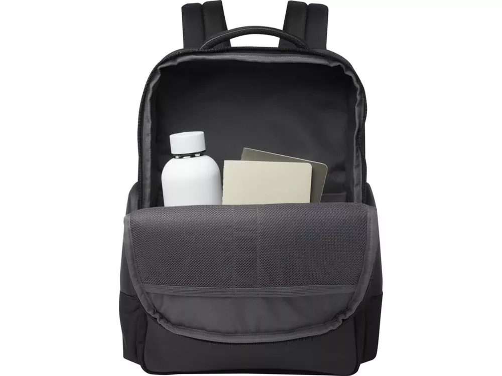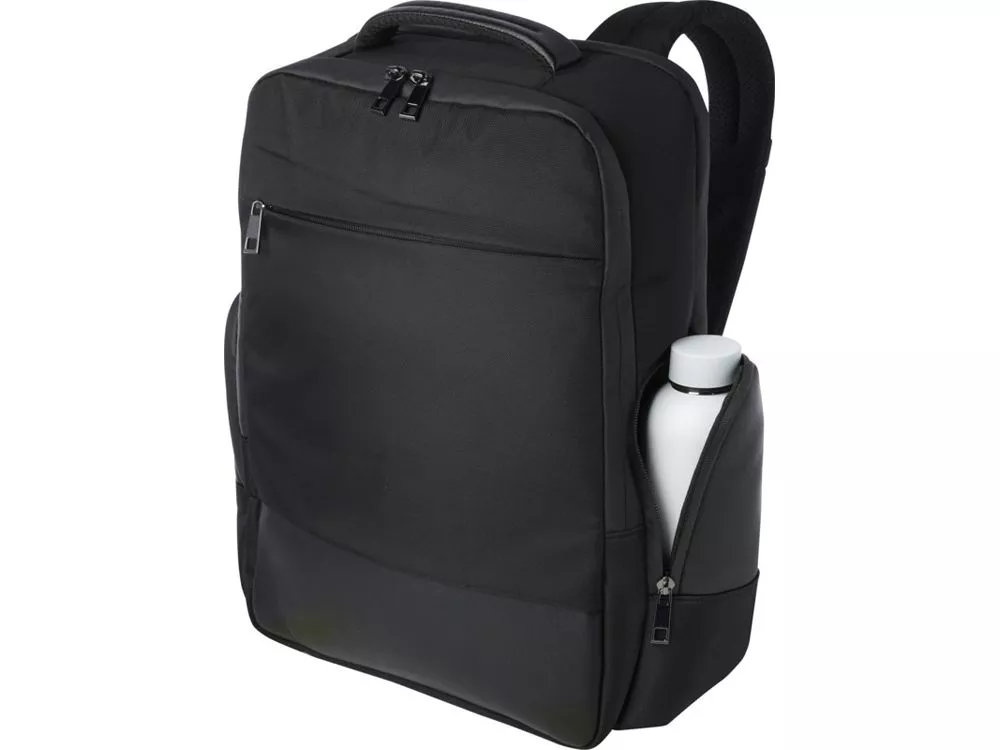 Изящный, большой и прочный рюкзак для ноутбука Expedition Pro, сертифицированный по стандарту GRS, станет идеальным спутником для профессионалов, которые всегда в пути. Он изготовлен из водоотталкивающего переработанного PET-пластика 900D в сочетании с элементами из полиуретана премиум-класса и подкладкой из переработанного PET-пластика. Он имеет специальное отделение для ноутбука с диагональю 15,6 дюйма, отделение для планшета, просторное основное отделение со вшитым герметичным карманом для туалетных принадлежностей, несколько карманов-органайзеров и боковых карманов, передний карман на молнии и потайной карман прямо под багажным ремнем на спине. Модель имеет мягкие регулируемые лямки, встроенный карман для карточек, петлю для солнцезащитных очков, формованную подкладку из воздушной сетки, а также мягкую ручку, обеспечивающую максимальный комфорт и удобство при переноске. Объем: 25 литр. Не содержит ПВХ. 900DGRS certified recycled polyester.