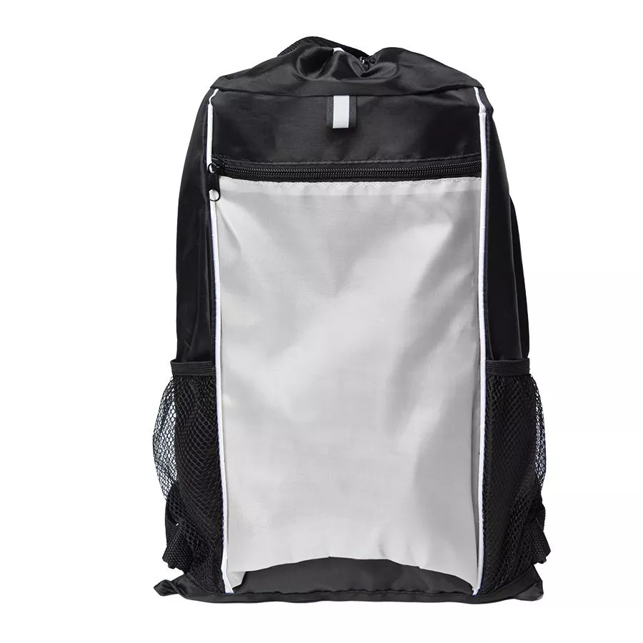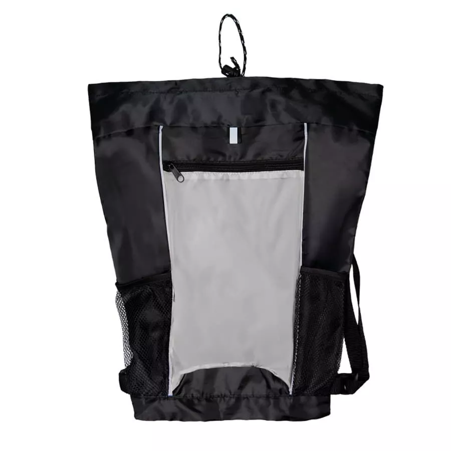Рюкзак с кулиской и регулируемыми плечевыми ремнями. Открытое основное отделение со шнурком. Передний карман на молнии. Светоотражающие элементы. Два боковых сетчатых кармана. Материал: полиэстер 210D.