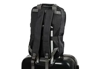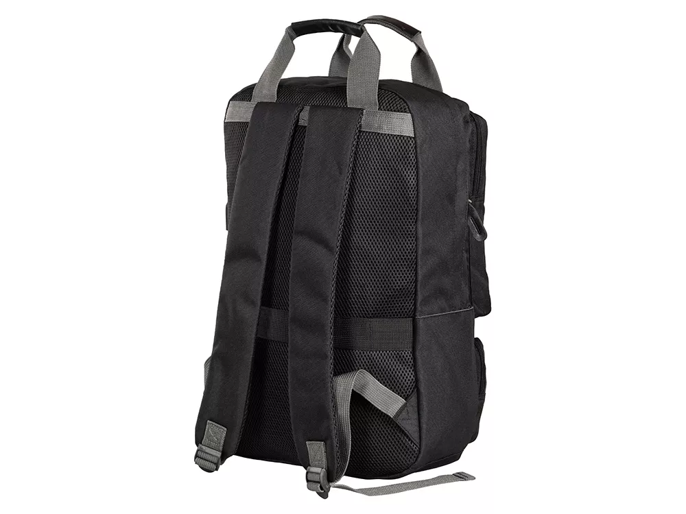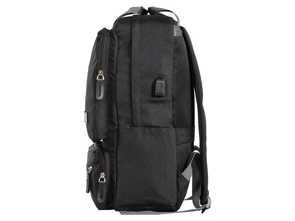Рюкзак, в котором можно разместить все необходимое: - 2 наружных отделения на молнии, каждое из которых имеет карман на молнии, - 2 боковых кармана, - внутри органайзер, - отделение для ноутбука, - USB разъем, - сетчатая спинка, - 2 ручки вверху для большего удобства, - карабин для ключей внутри, - отделка из искусственной кожи на наружном кармане и на бегунках Термотрансфер (1 цвет (цветные изделия)) на данный товар осуществляется бесплатно. Оплачивается только настройка оборудования в размере 8700 рублей на весь тираж.