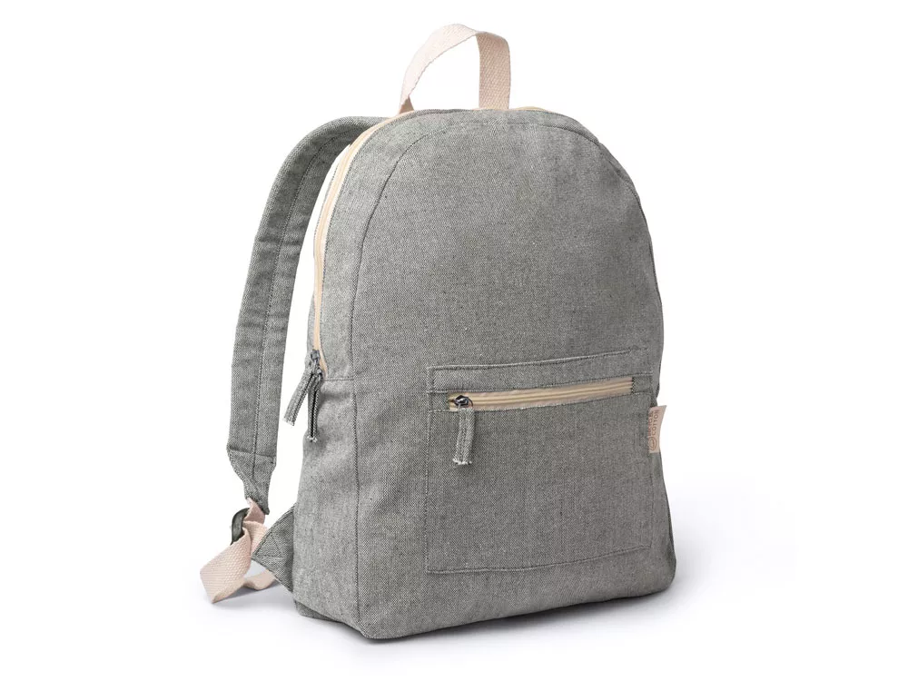 Экологичный рюкзак из переработанного хлопка плотностью 320 г/м². Передний карман и мягкие ручки.