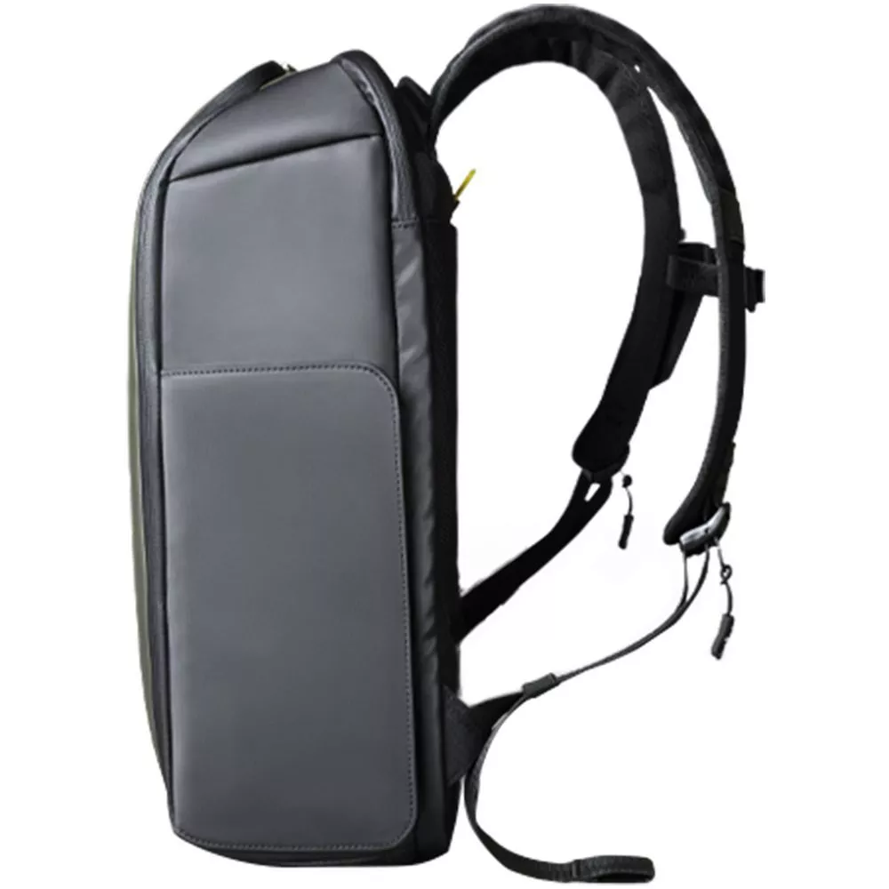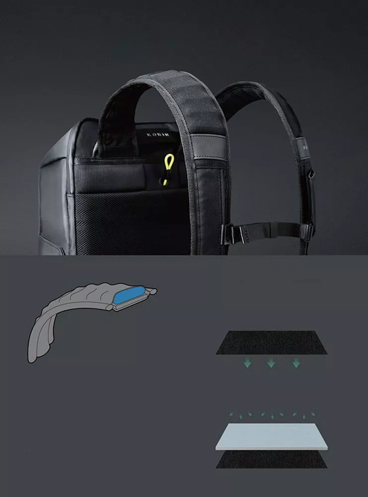 - Анатомическая конструкция рюкзака вместе с широкими лямками и поперечным ремнем на магнитной пряжке перераспределяют часть нагрузки с плеч и спины на талию и бедра, в результате чего вес рюкзака воспринимается на 20-25% легче, чем при использовании стандартных моделей