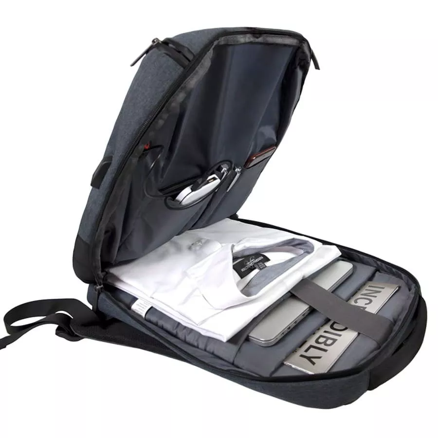 · Основная ткань: 100% полиэстер, подкладка: 100% полиэстер · Объём: 22 литра · Вмещает ноутбук 15" Описание: · Сочетание прочных и водоотталкивающих материалов 2х фактур: меланж и 3D жаккард · Водонепроницаемые молнии с лазерным кроем · Специальный RFID карман с системой защиты от несанкционированного считывания персональных данных · Внутри укрепленный отдел для ноутбука с защитной тесьмой на липучке · USB порт для подзарядки вашего устройства (внутри рюкзака расположен кабель для соединения с power bank) · Удобный карман - органайзер внутри · Умный карман «Анти-вор» для крепления на выдвижной ручке чемодана · Эргономичная спинка и лямки рюкзака из вентилируемого материала · Карман на молнии для проездных карт на лямке рюкзака · Лямки прошиты дополнительными стропами в быстро изнашиваемых местах, которые можно отрегулировать по длине и зафиксировать пластиковыми крепежами · Брендированные металлические пуллеры Bag Fly · Жаккардовый логотип Bag Fly внутри · Картонный ярлык Bag Fly · Внутрь рюкзака вложена сумка из нетканого материала для хранения · Упаковка: прозрачный пакет