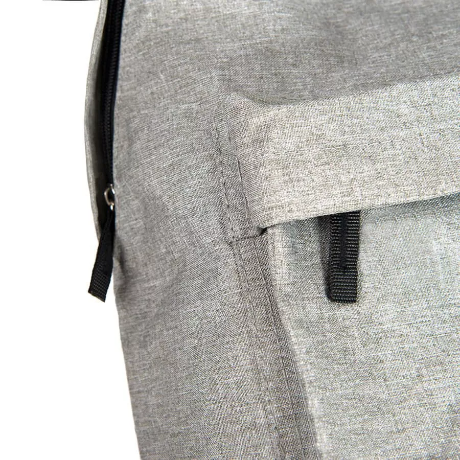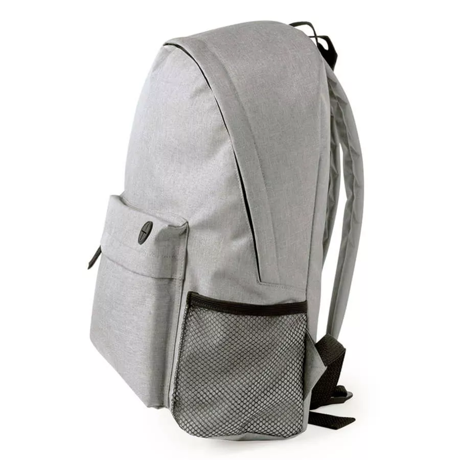 Цвет, близкий к Pantone Cool Grey 6 C Стильный компактный городской рюкзак из плотного полиэстера 600D станет идеальным помощником. Водозащитный полиэстер защитит от промокания ваши вещи, а клапаны закрывающие молнию, предотвратят попадание воды внутрь. Вместительный внешний карман с силиконовым разъемом для наушников и боковые карманы из сетки с эластичной резинкой добавят дополнительного места для нужных вещей.