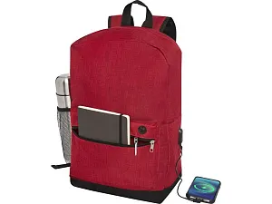 Передняя панель рюкзака для ноутбука оформлена с эффектом меланжевой расцветки, а нижняя часть и задняя панель окрашены в черный цвет. Оснащен большим главным отделением на молнии с чехлом для ноутбука 15,6 и передним отделением на молнии для быстрого доступа к мобильным устройствам. Поставляется с портом для USB, включая кабель USB-A с 1 выходным разъемом и 1 – входным. Имеет удобные плечевые ремни с подкладкой, ручку и сетчатый карман для бутылки с водой. Реальный цвет изделия может незначительно отличаться в зависимости от особенностей набивки, окраски и структуры ткани.