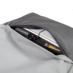 Основной цвет: близкий к Pantone 423 C, нижняя часть: цвет, близкий к Pantone 426 C · Основная ткань: 100% полиэстер c PU покрытием, подкладка: 100% полиэстер · Объём: 13 литров · Вмещает ноутбук 15,6" Описание: · Прочный и водоотталкивающий материал Anti-scratch · Основной отдел на молнии с двумя бегунками и планкой, защищающей от попадания влаги внутрь · Внешний удобный карман -органайзер на молнии · Внутри укрепленный отдел для ноутбука с защитной тесьмой на липучке · Дополнительные карманы для хранения документов · Эргономичные лямки · Укрепленная ручка рюкзака · Лямки прошиты дополнительными стропами в быстро изнашиваемых местах, которые можно отрегулировать по длине и зафиксировать пластиковыми крепежами · Брендированные металлические пуллеры Bag Fly · Жаккардовый логотип Bag Fly внутри · Картонный ярлык Bag Fly · Упаковка: прозрачный пакет