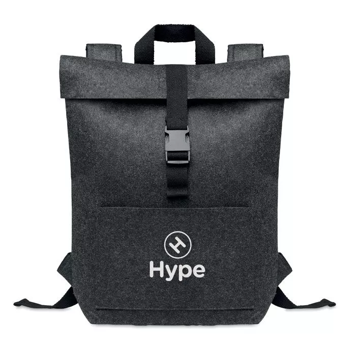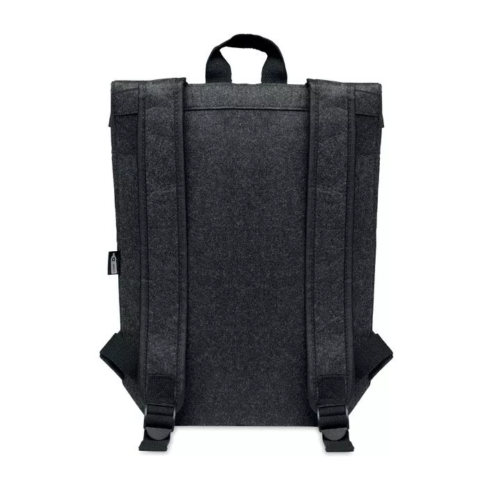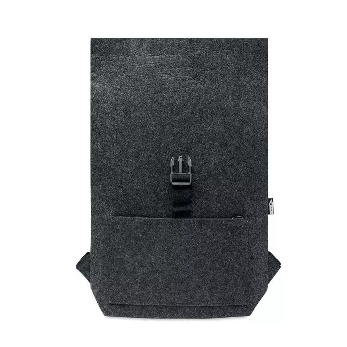 Рюкзак из переработанного войлока RPET с хлопковым ремешком и карманом на молнии спереди. Имеет отделение для ноутбука.