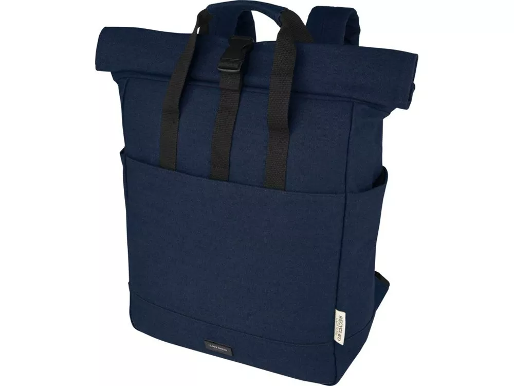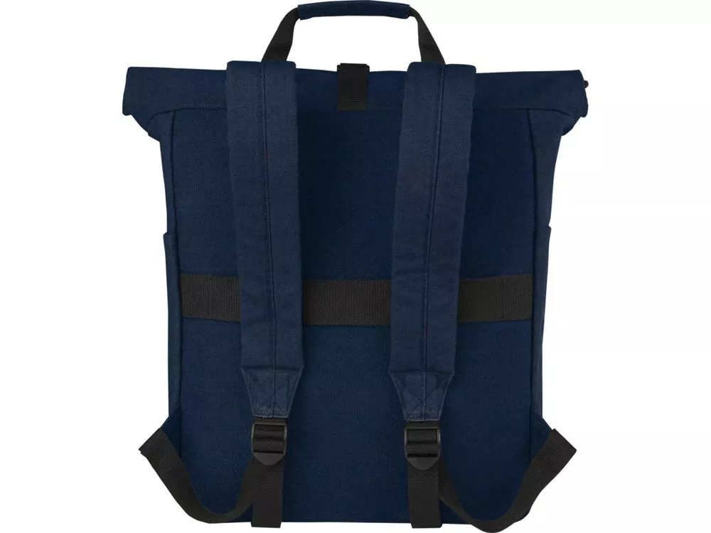 Изготовленный из высокопрочных экологичных материалов, брезента и подкладки из переработанного ПЭТ, соответствующих стандарту GRS, рюкзак Joey со сворачивающимся верхом имеет специальный чехол для планшета и отделение с подкладкой для ноутбука диагональю 15 дюймов. Рюкзак также имеет 2 боковых кармана для воды, один большой передний карман на молнии и сворачивающуюся верхнюю часть на молнии для максимальной вместимости и безопасности. Две усиленные вязанные ручки обеспечивают удобство и простоту ношения в качестве деловой сумки-тоут. Декоративная металлическая пластина может придать логотипу сияние благодаря утонченному матовому покрытию.