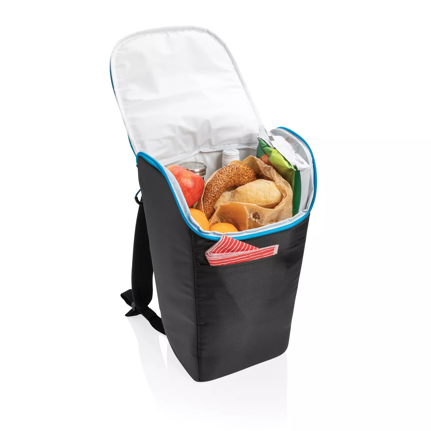 Этот рюкзак-холодильник легко взять с собой в небольшое путешествие, поход или использовать в офисе. Закрывается на молнию, спереди предусмотрен дополнительный карман, чтобы вы смогли взять с собой все необходимое. Вмещает до 6 бутылок или 24 банок. Регулируемые лямки, снаружи — комбинация из брезента и полиэстера. Внутри — 100% PEVA.