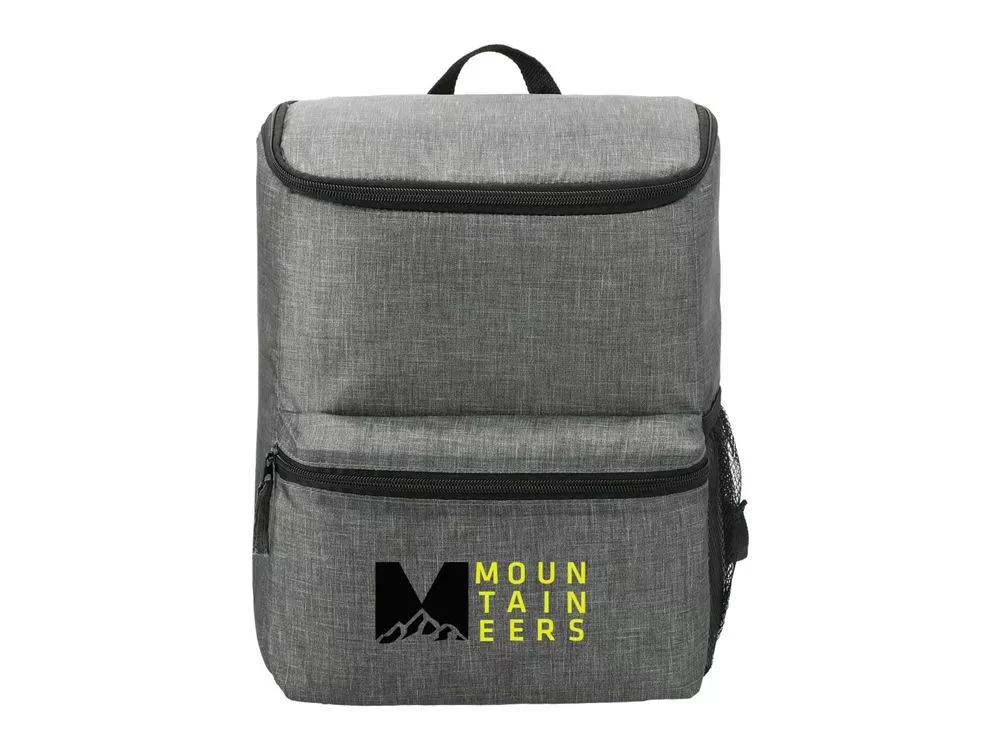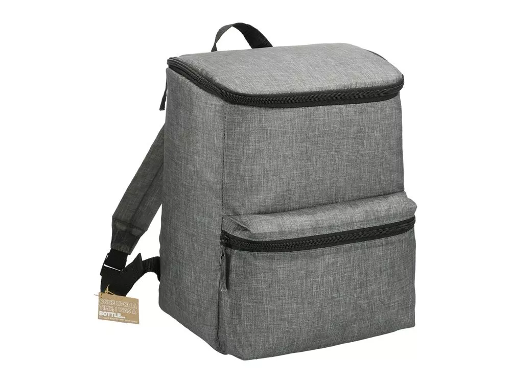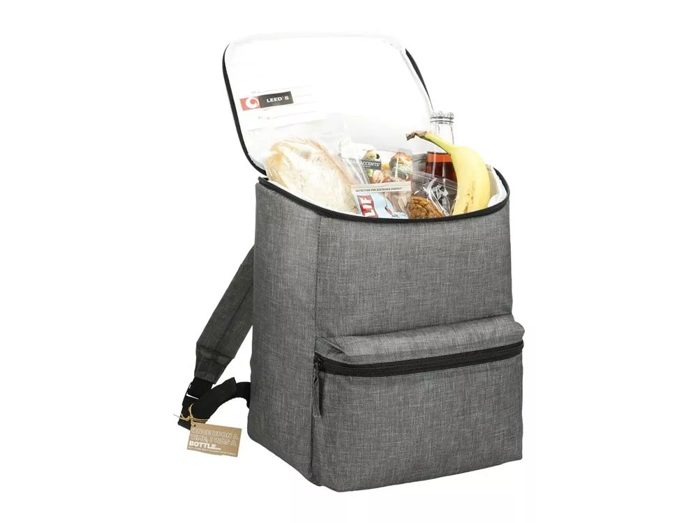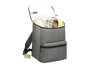 Рюкзак-холодильник из переработанного пластика вмещает 20 банок по 0,33 л. Спереди карман на молнии. Сбоку сетчатый карман. Лямки регулируются по длине. Термотрансфер (1 цвет (цветные изделия)) на данный товар осуществляется бесплатно. Оплачивается только настройка оборудования в размере 8700 рублей на весь тираж.