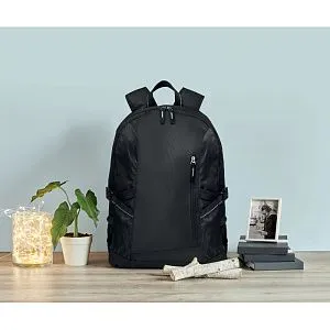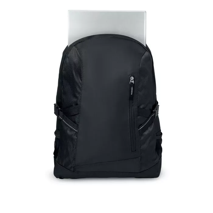 "Рюкзак для ноутбука размером 15"" выполнен из полиэстера плотностью 600D. Наружный карман на молнии, два боковых отсека. Регулируемый плечевой ремень."