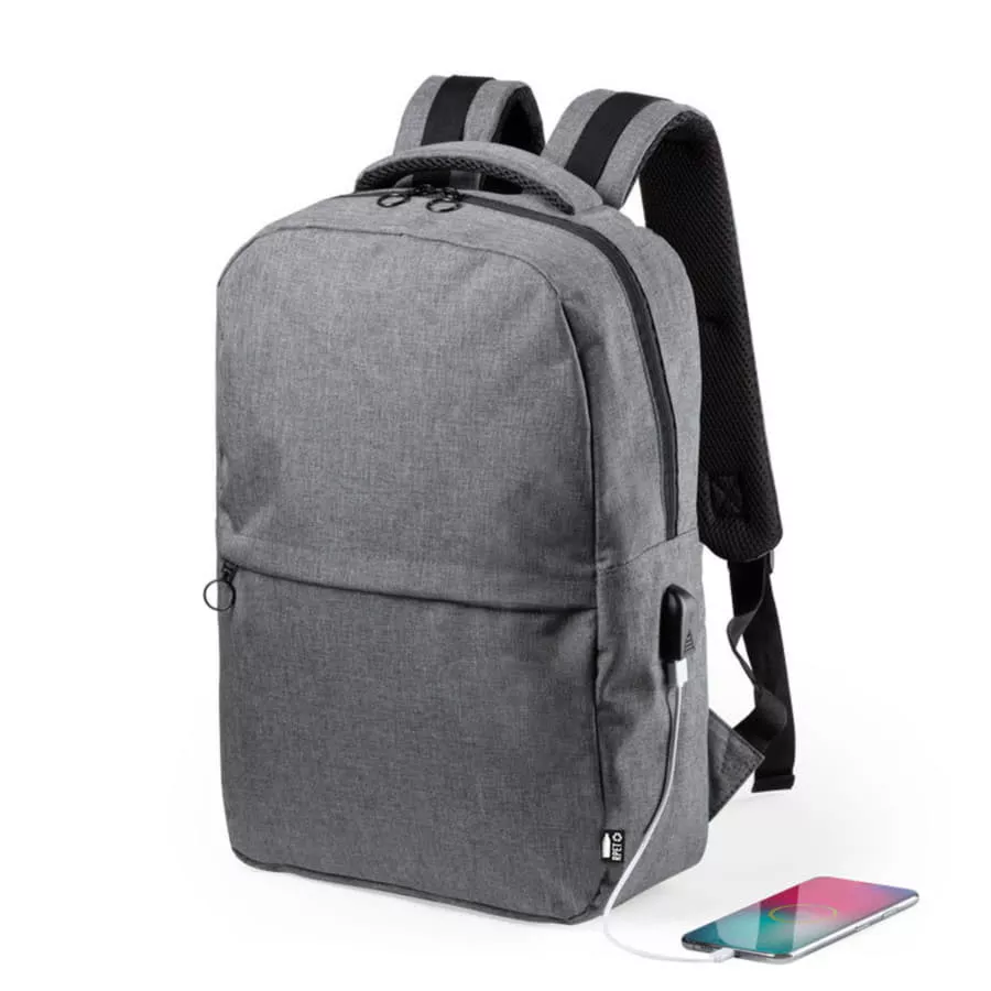 Повседневный рюкзак стиля casual выполнен из плотного 600 D полиэстера RPET, полученного из переработанных пластиковых материалов. Давая пластику вторую жизнь, мы вносим вклад в сохранение природы нашей планеты. Быть осознанным в своем потреблении – новый полезный тренд жизни. · Объём: 16 литров · Вмещает ноутбук 15" Описание: · Прочный и водоотталкивающий переработанный материал · Основной отдел на молнии с двумя бегунками для удобства открытия · Наружный удобный карман - органайзер на молнии · Внутри укрепленный отдел для ноутбука с защитной тесьмой на липучке · USB разъем для подзарядки вашего устройства (внутри рюкзака расположен кабель для соединения с power bank) · Эргономичные лямки и ручка рюкзака · Лямки прошиты дополнительными стропами в быстро изнашиваемых местах, которые можно отрегулировать по длине и зафиксировать пластиковыми крепежами · На рюкзаке есть специальный лейбл, указывающий на то, что продукция выполнена из RPET · Упаковка: прозрачный пакет