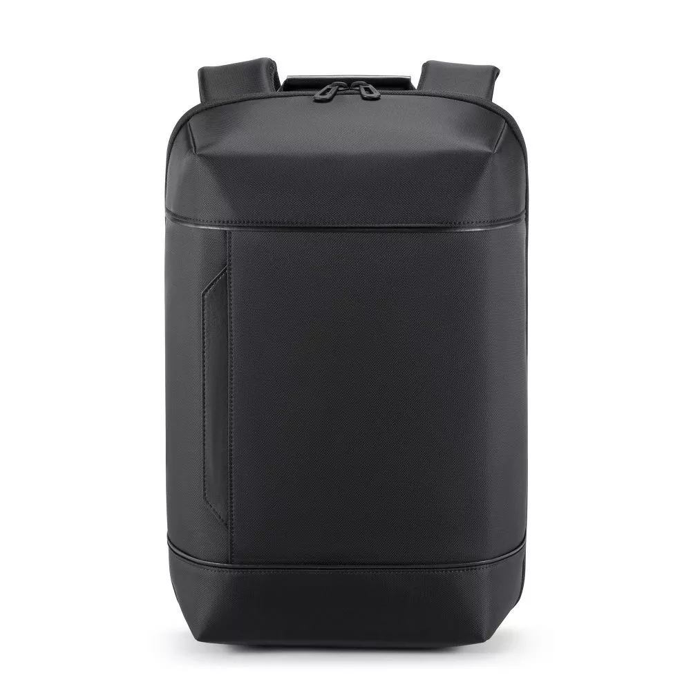 Стильный городской рюкзак для урбаниста. Аккуратный, держит форму, визуально приятный материал с красивым рисунком и гидрофобной обработкой. Удобный на каждый день, мягкая дышащая спинка, крепление на ручку чемодана. Строгая цветовая гамма черный + серый, минимализм в деталях. С внешней стороны нет карманов, риверсивная молния основного отделения с вырезами на пуллерах для установки замка. Открытие на 180º для легкого доступа к содержимому.