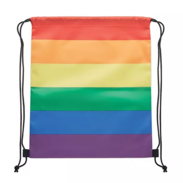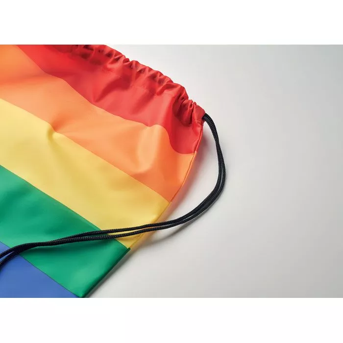 Рюкзак на шнурках в цветах радуги из полиэстера 210D RPET с полипропиленовыми нитками.