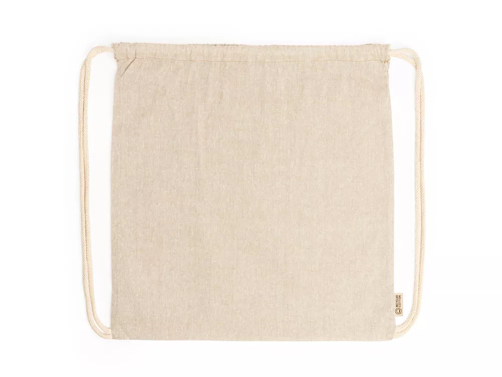 Рюкзак-мешок из переработанного хлопка плотностью 120 г/м² с меланжевой отделкой и шнурками натурального цвета. Доступен в различных цветах.