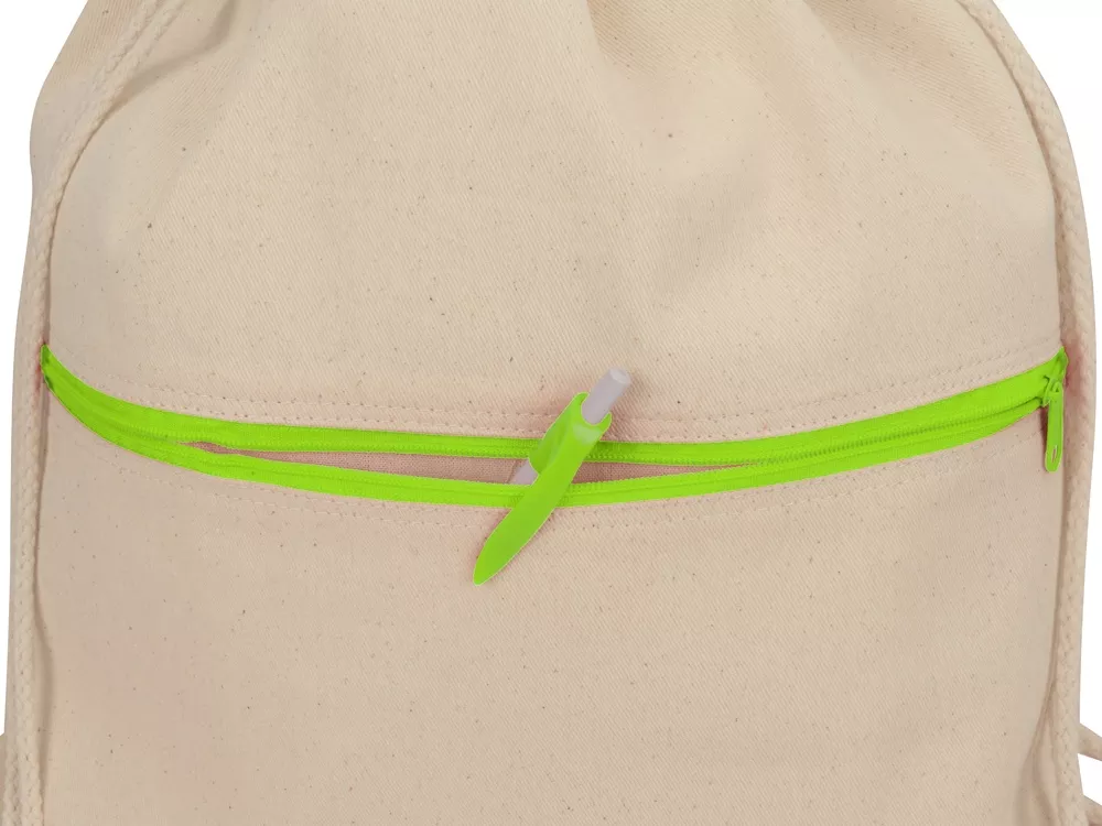 Мешок из плотного натурального хлопка. Большой вместительный карман снаружи застегивается на яркую молнию.