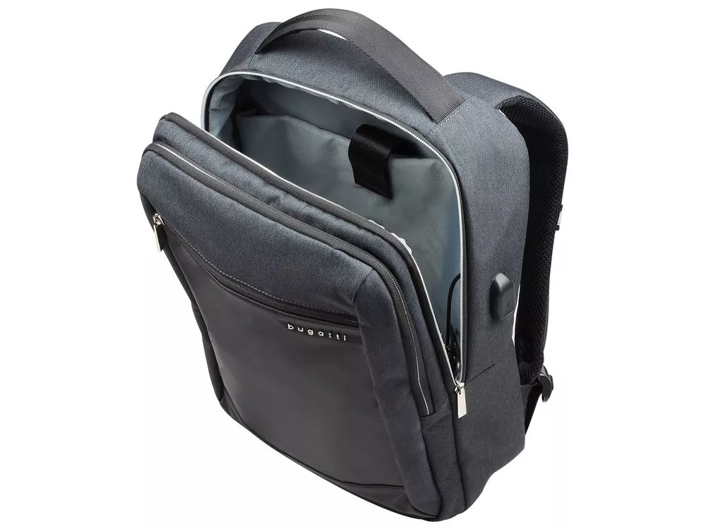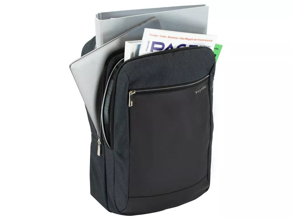 РЮКЗАК SERA Наша мужская коллекция Sera предназначена для делового человека, предпочитающего стиль кэжуал. Элегантная простота, чёткие формы, высококачественные материалы, интегрированная в каждый продукт система защиты данных RFID – всё это выводит коллекцию Sera в категорию эталонных сумок Bugatti. Все модели отлично сочетаются как со спортивным стилем, так и с элегантными строгими костюмами. СВОЙСТВА Внутренняя организация: отделение на молнии с USB-портом и мягким отделением для ноутбука 15’’, отделение на молнии с открытым карманом и карманом-органайзером (открытый карман, 3 слота для карточек, 2 держателя для пишущих принадлежностей) Внешняя организация: передний карман на молнии с защитой данных RFID, задний потайной карман на молнии, верхняя ручка высотой 6 см, ремень для соединения с телескопической ручкой чемодана, 2 мягких регулируемых плечевых ремня (до 185 см) Размер: 32 x 12 x 46 см Вес: 0,66 кг Материал: полиэстер
