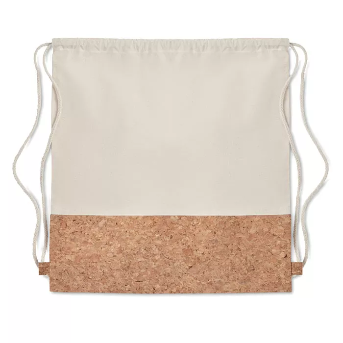 Рюкзак на шнурках из хлопка с пробковыми вставками. Длинные ручки. 160 г / м².