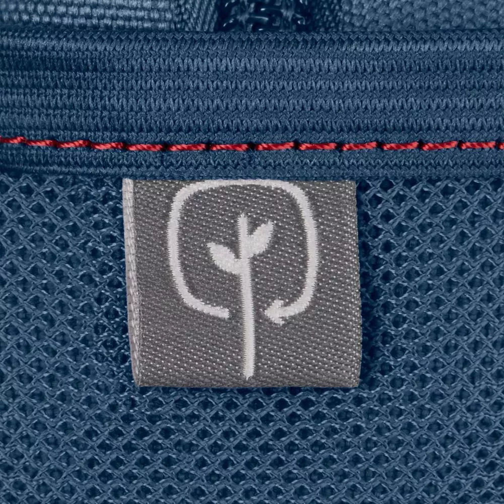 Изготовлен из 100% переработанного материала — на один рюкзак уходит в среднем 12 ПЭТ-бутылок.
