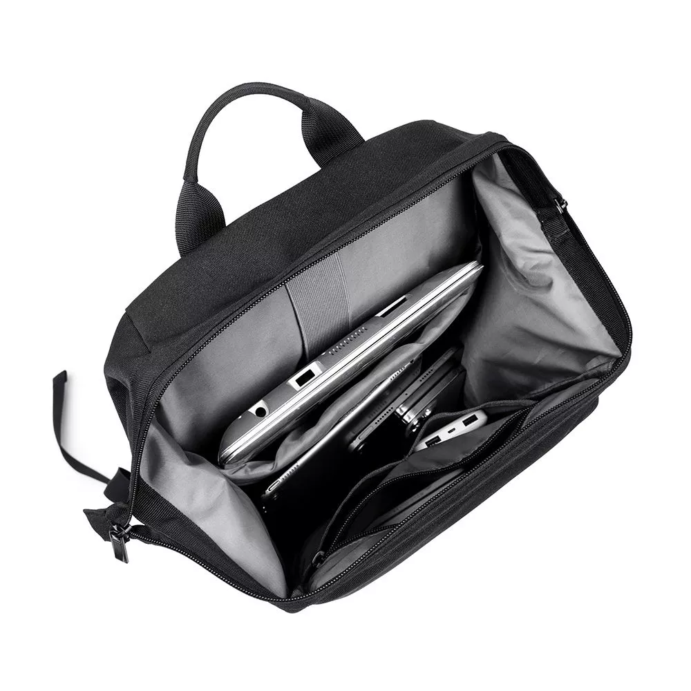 Практичная модель, удобная для использования в повседневной жизни. Рюкзак имеет большое отделение, в котороем есть 3 внутренних кармана, один из которых для ноутбука. Также есть карман на лицевой части рюкзака и 2 вместительных кармана с двух сторон. С обратной стороны рюкзака есть лямка для возможного крепления на чемодан.