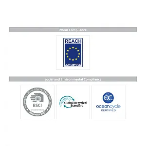 Ткань получена из пластика (бутылок) собранного в прибрежных зонах, наиболее подверженных загрязнению. Благодаря прозрачной производственной цепочке путь пластика от места сбора до фабрики легко отследить. Сертификат OCEANCYCLE является знаком качества, он признан во всем мире и подтверждает происхождение сырья.