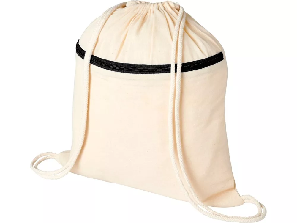 Рюкзак Oregon на молнии с кулиской. Большое основное отделение затягивается хлопковым шнурком. Спереди расположен цветной карман на молнии. Прочность до 5 кг. Хлопок 100 г/м².