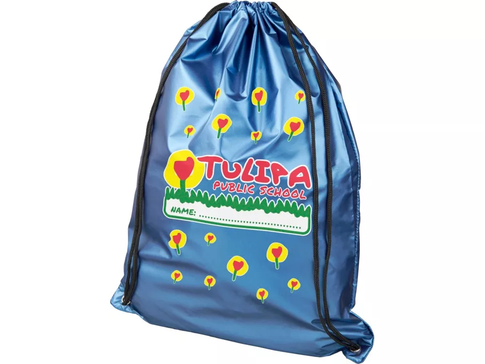Блестящий рюкзак со шнурком Oriole. Большое основное отделение с кулиской. Дизайн с блестящей отделкой. Вместимость: 9 литров, прочность до 5 кг. Полиэстер 190T.
