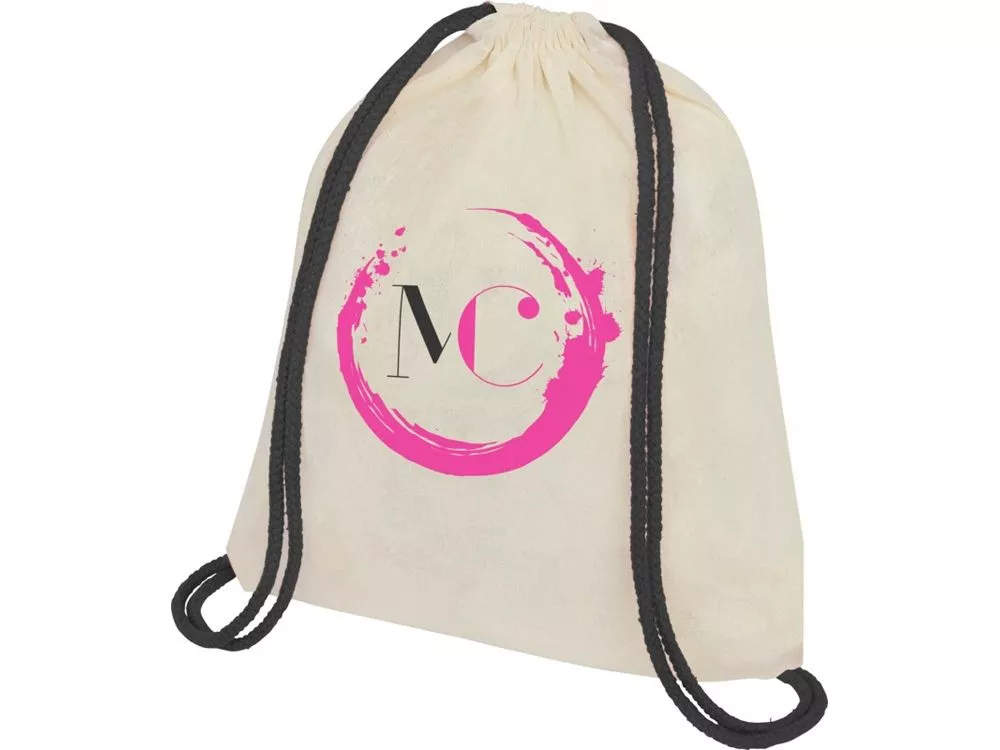Рюкзак со шнурком и главным отделением на цветной шнуровке. Прочность до 5 кг. Трафаретная печать (1 цвет (цветные изделия)) на данный товар осуществляется бесплатно. Оплачивается только настройка оборудования в размере 3800 рублей на весь тираж.