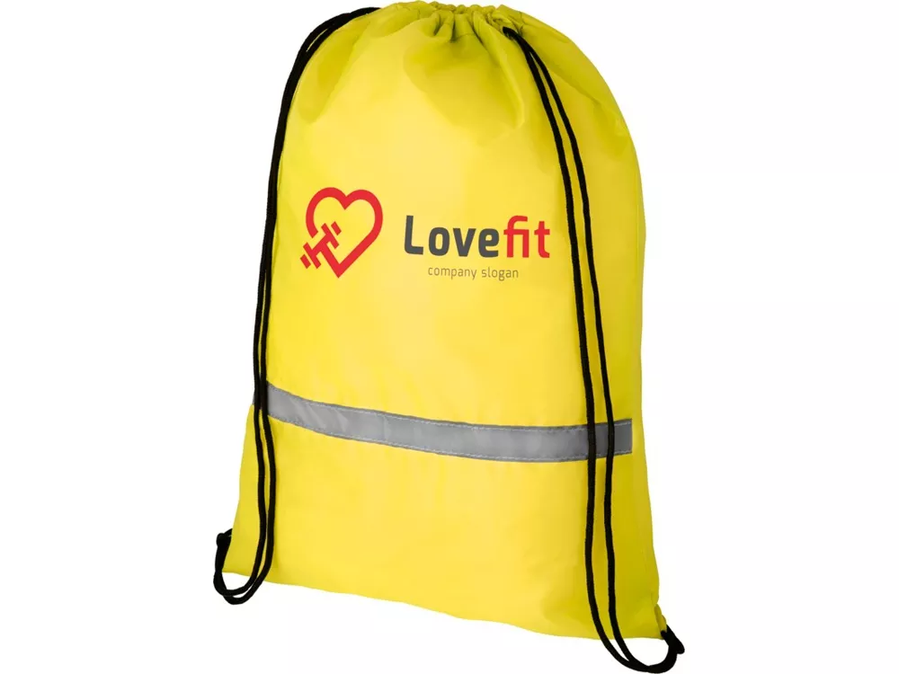 Защитный рюкзак Oriole со шнурком. Большое основное отделение с кулиской. Имеет отражающую полоску спереди и укрепленные углы. Прочность до 5 кг. Полиэстер 190T.