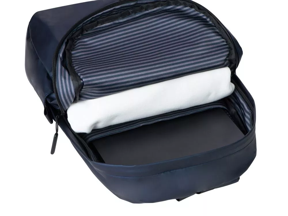 Элегантный легкий городской рюкзак из мягкого приятного на ощупь материала можно использовать для передвижений по городу, а так же в поездках, для чего на спинке предусмотрен ремень для крепления на ручку чемодана. Для удобства и компактного хранения содержимого снаружи расположены 2 передних кармана на молниях и 2 боковых кармана. Внутри уплотненный карман для ноутбука. Стильная подкладка в полоску в тон цвета внешнего материала делает рюкзак модным аксессуаром. Благодаря водостойкому материалу и молниям содержимое рюкзака не намокнет под дождем. Лямки регулируются по длине. Термотрансфер (1 цвет (цветные изделия)) на данный товар осуществляется бесплатно. Оплачивается только настройка оборудования в размере 10000 рублей на весь тираж.