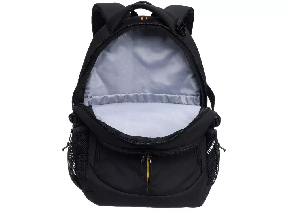 Городской рюкзак TORBER Rockit - это отличное решение для тех, кто живёт активной жизнью. Карман-органайзер и кольцо для ключей позволят вам упорядоченно хранить большое количество мелких вещей. Два боковых кармана из эластичной сетки используются для хранения бутылок с водой. Спинка и ремни оборудованы системой циркуляции воздуха. Эргономичная ручка позволяет носить рюкзак не только на спине, но и в руках, когда это необходимо. Регулируемые плечевые ремни позволят вам подобрать максимально удобное положение рюкзака на спине. Объём 22 л дает вам возможность взять с собой всё, что может понадобиться. Функциональная организация: - Карман для телефона или зарядного устройства с отверстием для гарнитуры, наушников и проводов для зарядного устройства в верхней части рюкзака - Карман-органайзер включает ключницу и многочисленные кармашки для пишущих принадлежностей, мобильного телефона и других аксессуаров - Эргономичные плечевые ремни анатомической формы обеспечивают максимальное удобство в использовании рюкзака - Спинка рюкзака с системой циркуляции воздуха имеет специальную рельефную поверхность, обеспечивает удобное прилегание к спине и вентиляцию - Стягивающие ремни позволяют регулировать объём рюкзака, а также ужимать багаж для более удобной транспортировки - Карманы из эластичной сетки подходят для хранения бутылок с водой и зонта