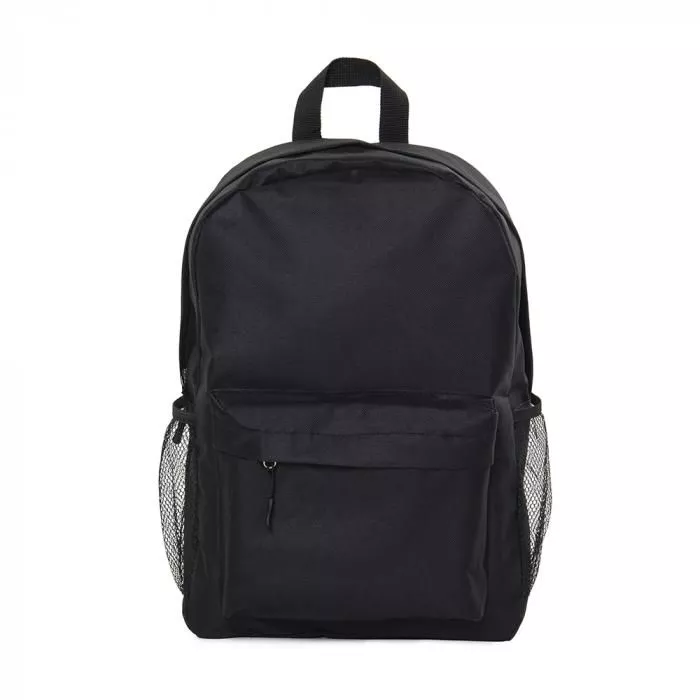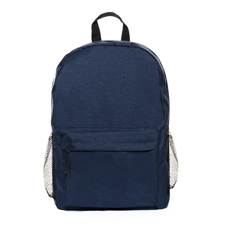 Рюкзак имеет одно основное отделение на молнии. Внутри рюкзака один большой карман. Снаружи рюкзак имеет большой объемный карман на молнии и боковые сетчатые карманы на резинках. Внутренние швы рюкзака окантованы тесьмой. Рюкзак оснащен мягкой спинкой, широкими лямками с окантовкой по краю и ручкой.