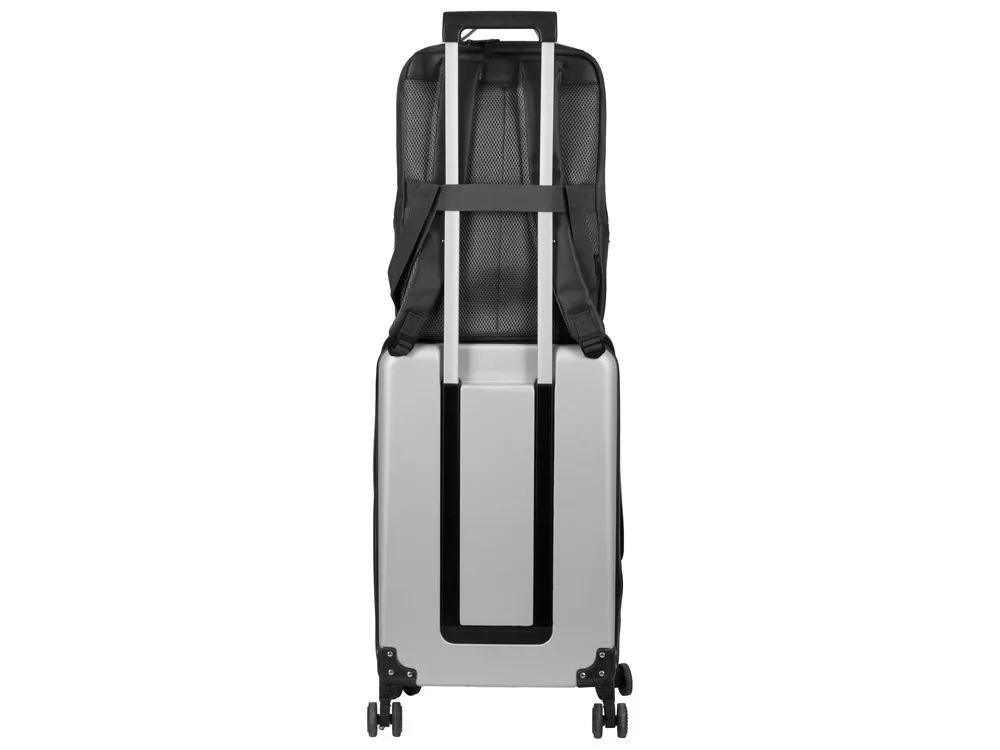 Бизнес-рюкзак из плотной ткани, хорошо держащий форму, имеет строгий и стильный дизайн. Внутри 2 отделения - для ноутбука и для одежды с органайзером и внутренним карманом на молнии. Снаружи расположено большое отделение на молнии. Рюкзак удобен для поездок, при этом компактен и оснащен ремнем для крепления к чемодану. В комплекте нетканый мешок для хранения и съемный металлический шильд для нанесения вашего логотипа. Гравировка (оптоволоконный лазер) (Без чернения) на данный товар осуществляется бесплатно. Оплачивается только настройка оборудования в размере 1000 рублей на весь тираж.