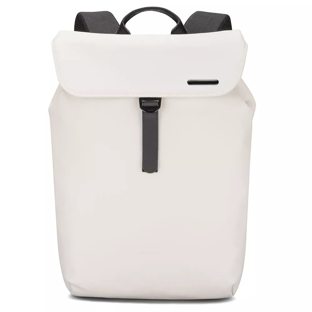 Закрывается клапаном на холдер с возможностью регулировки под объем. Кнопки с боковых сторон помогают трансформировать форму и объем рюкзака.