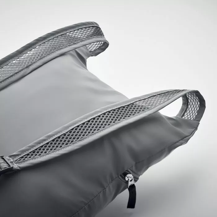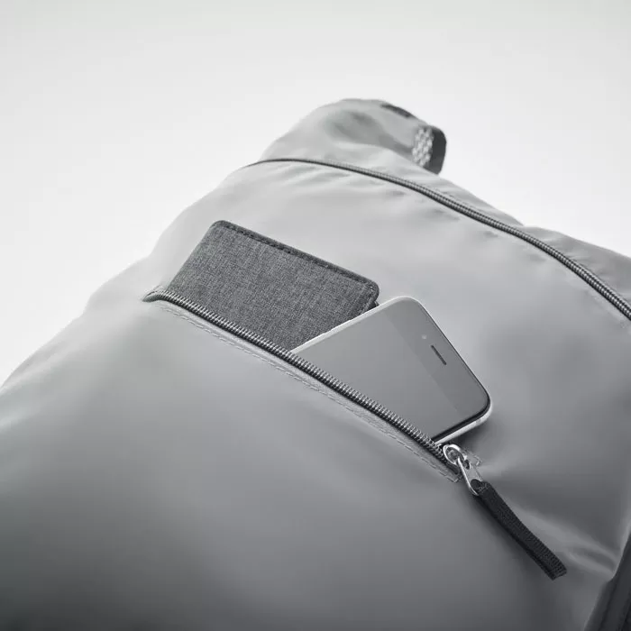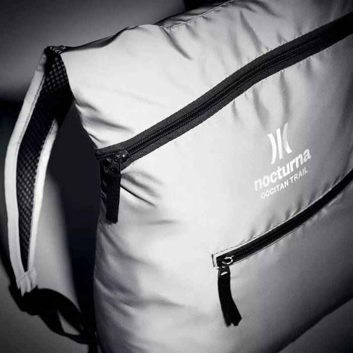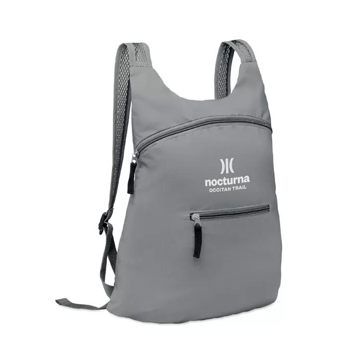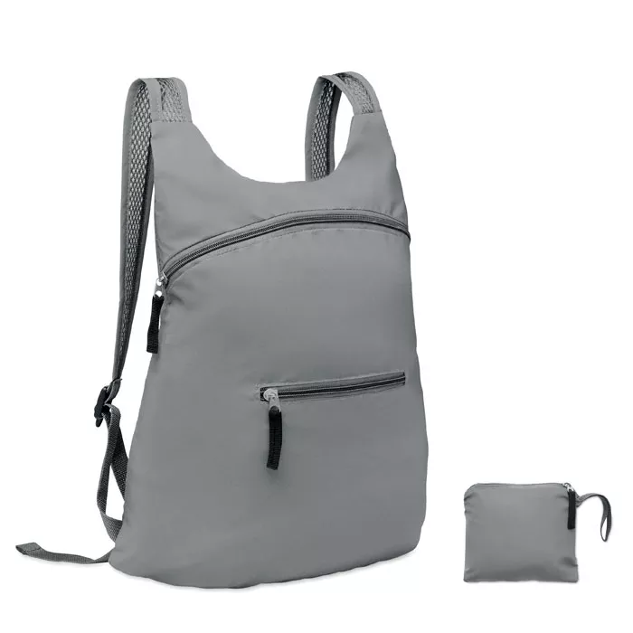 Складной спортивный рюкзак из светоотражающего полиэстера 190T с передним карманом на молнии. Регулируемые плечевые ремни.