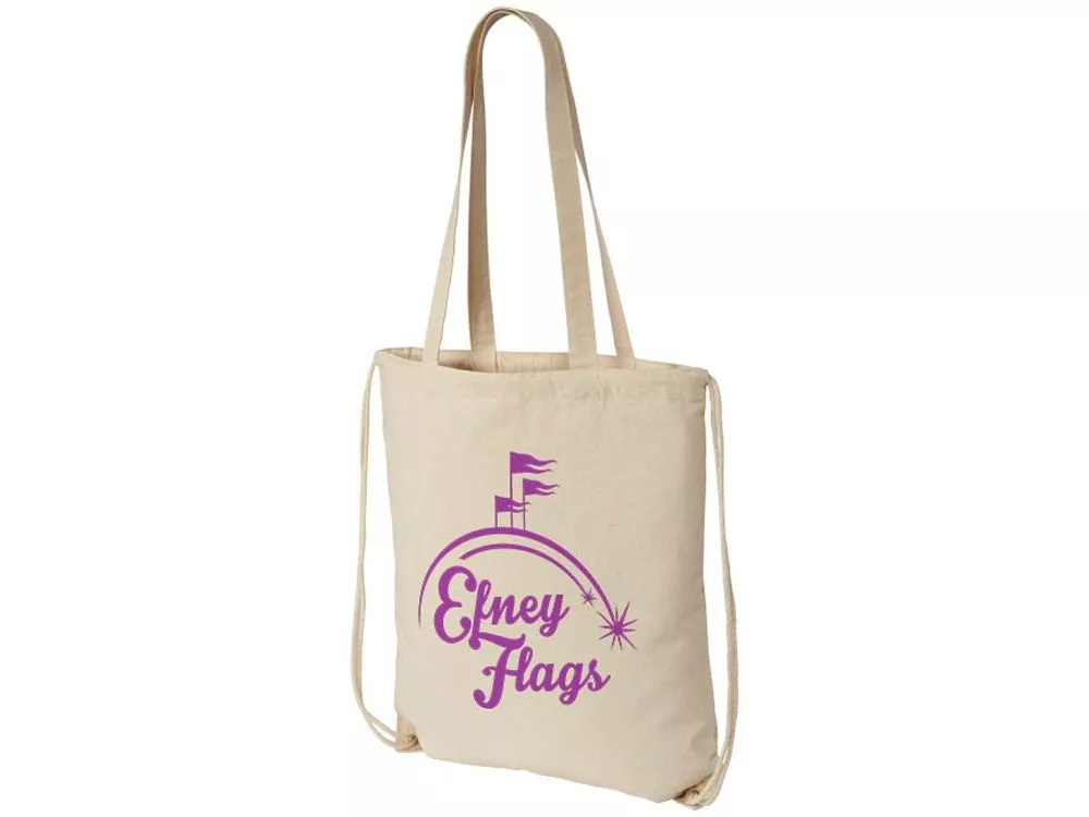 Многофункциональный хлопковый мешок с лямками и длинными ручками, который можно носить в качестве сумки для покупок или рюкзака. Большой основное отделение закрывается затяжкой- шнурком. Трафаретная печать (1 цвет (цветные изделия)) на данный товар осуществляется бесплатно. Оплачивается только настройка оборудования в размере 8200 рублей на весь тираж.