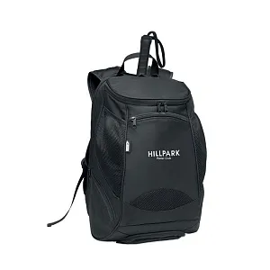 Рюкзак многофункциональный спортивный 600D из RPET с несколькими отделениями (включая мягкое отделение для ракетки). В комплекте регулируемый ремешок через плечо.