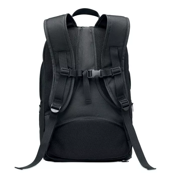 Рюкзак многофункциональный спортивный 600D из RPET с несколькими отделениями (включая мягкое отделение для ракетки). В комплекте регулируемый ремешок через плечо.