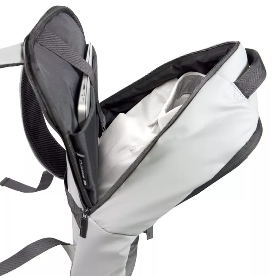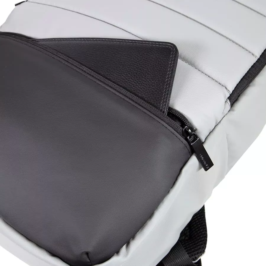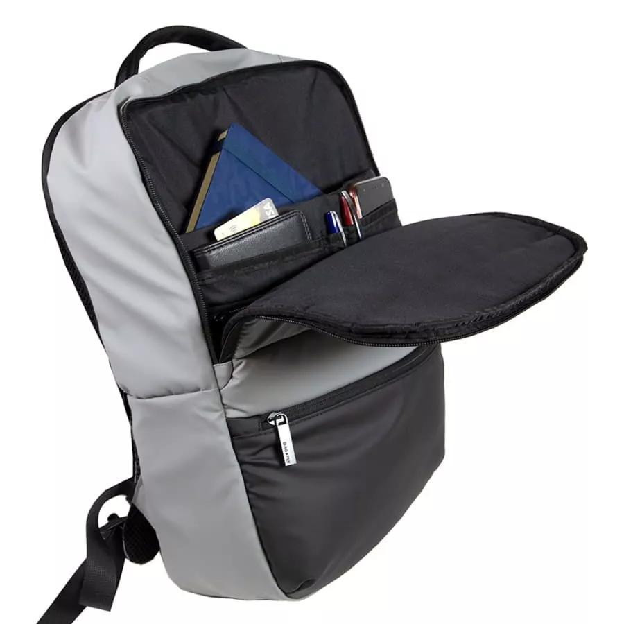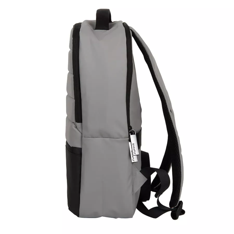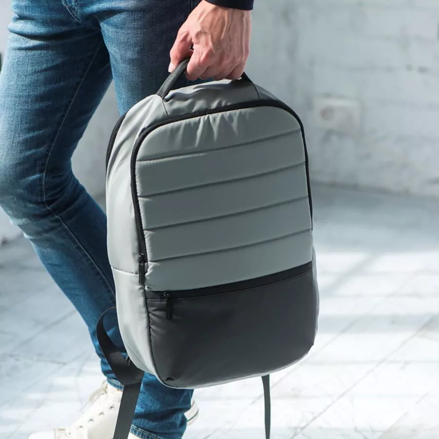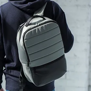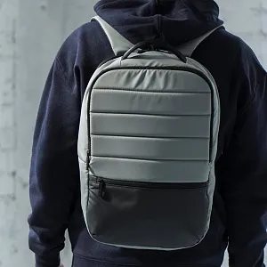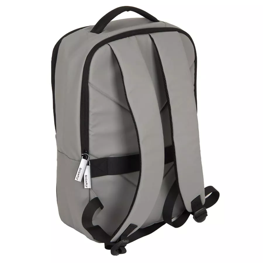 Основной цвет: близкий к Pantone 423 C, нижняя часть: цвет, близкий к Pantone 426 C · Основная ткань: 100% полиэстер c PU покрытием, подкладка: 100% полиэстер · Объём: 14 литров · Вмещает ноутбук 15,6" Описание: · Прочный и водоотталкивающий материал Anti-scratch · Два основных отдела с обратной молнией, защищающей от попадания влаги внутрь · Дополнительный внешний карман на молнии · Внутри укрепленный отдел для ноутбука с защитной тесьмой на липучке · Внутренний карман-сетка для термокружки или зонта · Дополнительные карманы для хранения · Эргономичные лямки · Укрепленная ручка рюкзака · Специальная стропа на спинке для крепления на выдвижной ручке чемодана · Лямки прошиты дополнительными стропами в быстро изнашиваемых местах, которые можно отрегулировать по длине и зафиксировать пластиковыми крепежами · Брендированные металлические пуллеры Bag Fly · Жаккардовый логотип Bag Fly внутри · Картонный ярлык Bag Fly · Упаковка: прозрачный пакет