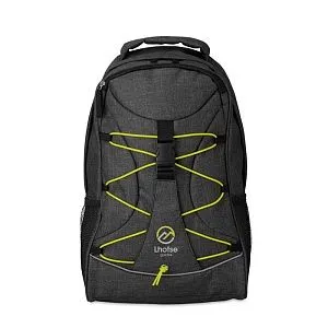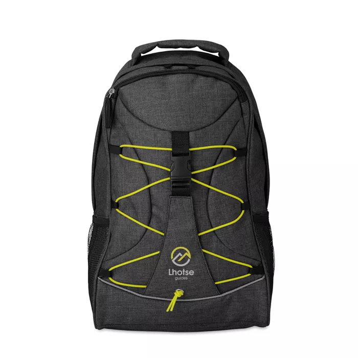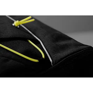 Рюкзак из полиэстера 600D с ярким контрастным шнурком и светоотражающей полоской на передней панели. Сетчатые карманы с обеих сторон.