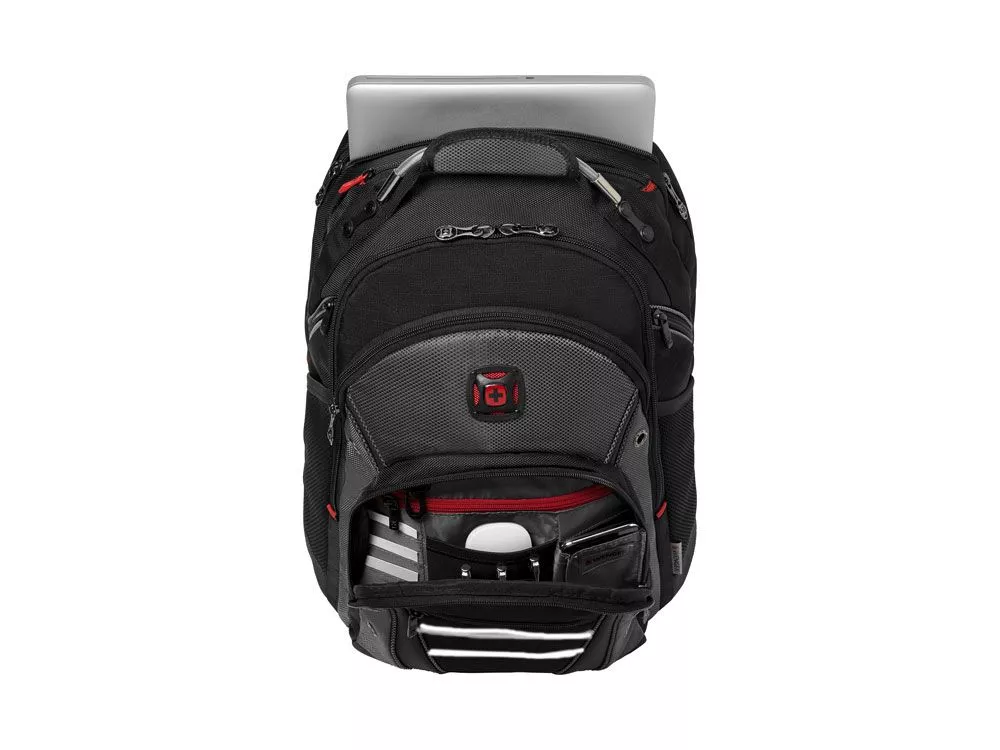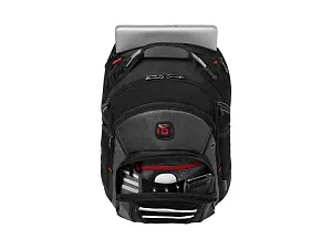 Рюкзак для ноутбука 16 (26 л) WENGER Synergy. Функциональная организация: • Отделение для ноутбука с мягкими стенками c тройной защитой 16'': Отделение с мягкими стенками с тройной защитой подходит для большинства ноутбуков с диагональю экрана до 16. • Карман-органайзер для мелких предметов: Карман-органайзер включает ключницу и многочисленные кармашки для пишущих принадлежностей, документов и карты памяти, флисовый карман для мобильного телефона. • Карман для вещей первой необходимости: Карман в передней части рюкзака подходит для хранения самых необходимых вещей, аксессуаров и телефона. • Система циркуляции воздуха Airflow: Спинка рюкзака с системой циркуляции воздуха имеет специальную рельефную поверхность, обеспечивает удобное прилегание к спине и вентиляцию. • Боковой карман для бутылок/зонта: Карманы из эластичной сетки подходят для хранения бутылок с водой и зонта. • Плечевые ремни: Эргономичные регулируемые плечевые ремни анатомической формы, оснащенные пропускающей воздух набивной подкладкой, обеспечивают максимальный комфорт при ношении рюкзака. • Амортизирующие вставки Shock-Absorbing: Амортизирующие вставки на плечевых ремнях Shock-Absorbing облегчают нагрузку на плечи и спину. • Ручка с тросом: Прочная ручка с металлическим тросом в основании. • Стабилизирующая платформа CaseBase: Специальная платформа CaseBase помогает зафиксировать рюкзак в вертикальном положении. • Отделение с отсеком для хранения документов. • Замки из цинка с черным никелированным покрытием, устойчивые к коррозии.