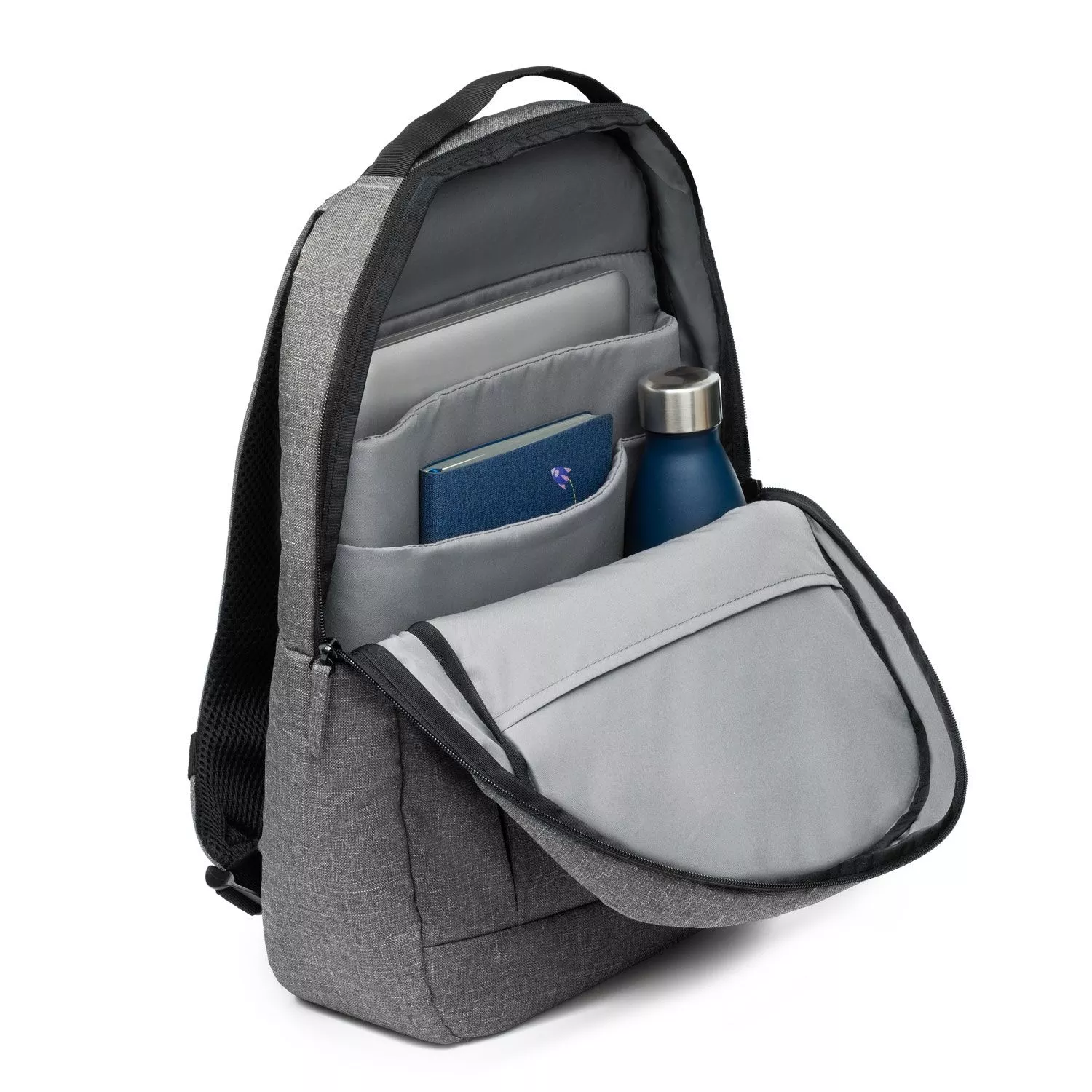 Повседневный рюкзак в стиле casual выполнен из плотного полиэстера, полученного из переработанных пластиковых материалов. Давая пластику вторую жизнь, мы вносим вклад в сохранение природы нашей планеты.Вы оцените отличную вместительность и комфорт рюкзака. Основной отдел на молнии с двумя бегунками для удобства при открытии. Внутри два укрепленных отдела для ноутбука до 15,6 дюймов и планшета, а также два накладных кармана для мелочей.Внешний карман на молнии – для телефона или ключей. Спинка имеет сетчатую и мягкую поверхность, которая пропускает воздух и не дает спине уставать. Эргономичные лямки рюкзака, которые можно отрегулировать по длине и зафиксировать.Бирка о соответствии материалов Global Recycle Standard и гарантирует, что данный продукт был произведен из переработанных материалов со строгим соблюдением социальных и экологических требований на протяжении всего процесса изготовления.